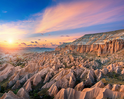 A UNESCO World Heritage Site since 1985, Göreme National Park (Cappadocia) is a spectacularly beautiful area that has been carved by erosion over the centuries. It is a real wonderland that should be explored when travelling to Turkey, with rock-hewn churches featuring expressions of Byzantine art, as well as troglodyte and underground dwellings and villages, dating back to the 4th century, that bear witness to how people lived there in the past. The area was also used as a hiding place by the Christians who moulded their dwellings, shelters and sanctuaries inside these capricious geological forms. Göreme National Park, whose landscape dates back 60 million years, covers an area of about 10 hectares in the heart of Cappadocia and is located very close to the eponymous town.