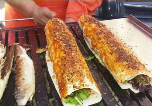 -On return, we will taste fish dürüm (wrap), rolled in thin lavash bread with vegetables and spices.