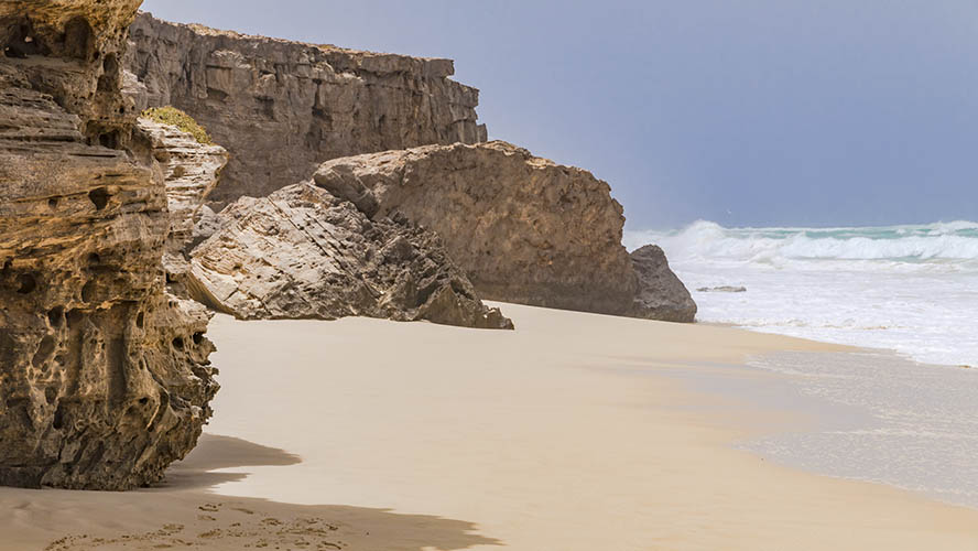 La Praia de Varandinha se extiende como una lengua dorada entre acantilados recortados y formaciones rocosas modeladas por el tiempo. A diferencia de otras playas de Boa Vista, más frecuentadas por turistas, aquí reina una soledad casi absoluta. Solo el sonido del viento y el vaivén de las olas rompen el silencio, haciendo de este un lugar ideal para quienes buscan desconectar del mundo y sumergirse en la inmensidad del paisaje.