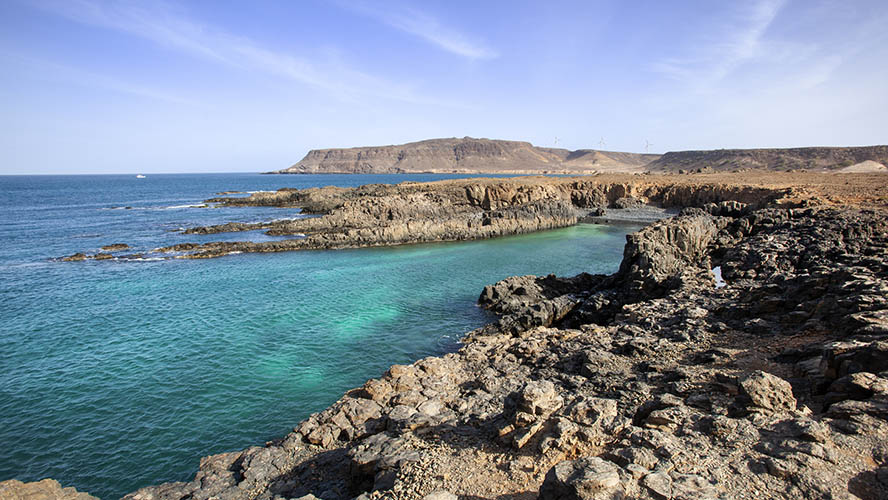 Pero no todo es mar en Sal Rei. Desde la ciudad, se pueden organizar excursiones en quad o 4×4 hacia el Desierto de Viana, un paisaje de dunas de arena blanca que parece sacado del Sáhara, o visitar la Bahía de Varandinha, donde acantilados y cuevas esculpidas por el viento crean un escenario único para la fotografía y la exploración.