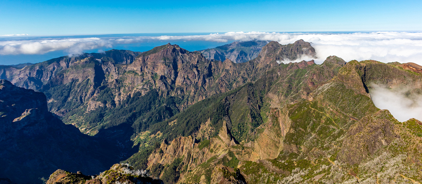 En Santo Antão, la isla más verde del archipiélago, los senderistas pueden perderse entre frondosos valles cubiertos de plantaciones de caña de azúcar y mangos, donde pequeños riachuelos corren en medio de terrazas agrícolas que descienden en pendientes pronunciadas. Contrasta con el paisaje árido y casi lunar de Fogo, donde el majestuoso Pico do Fogo, el punto más alto de Cabo Verde con sus 2.829 metros de altura, domina el horizonte. Esta variedad de ecosistemas, que incluye desde montañas cubiertas de nubes hasta vastas costas azotadas por el Atlántico, proporciona un sinfín de posibilidades.