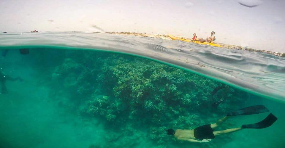 Escápate a la serena belleza deBahía de Sharm El Naga, conocida por suaguas cristalinas,arrecifes de coral vibrantes, yabundante vida marina. Disfruta de un relajante día debucear,nadando, yactividades junto a la playa, con almuerzo y traslados de ida y vuelta desde Hurghada o El Gouna incluidos.