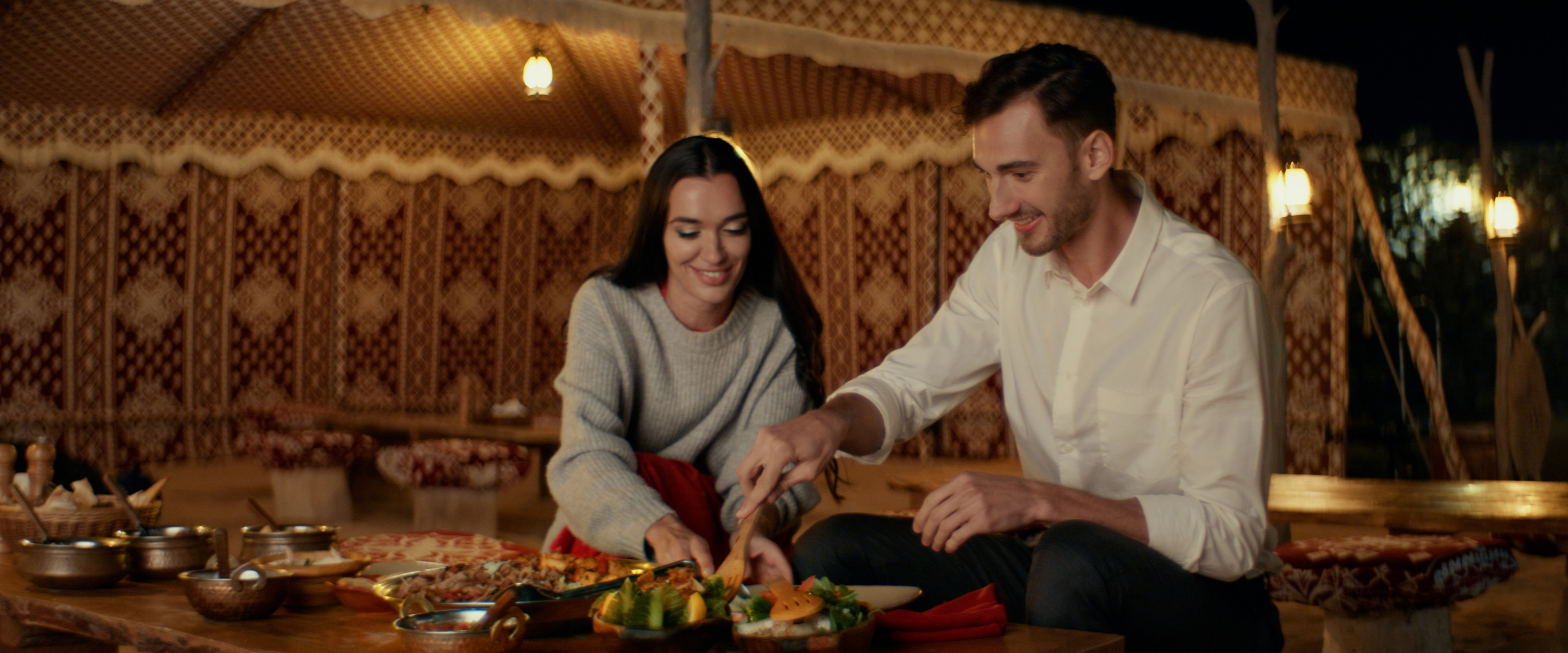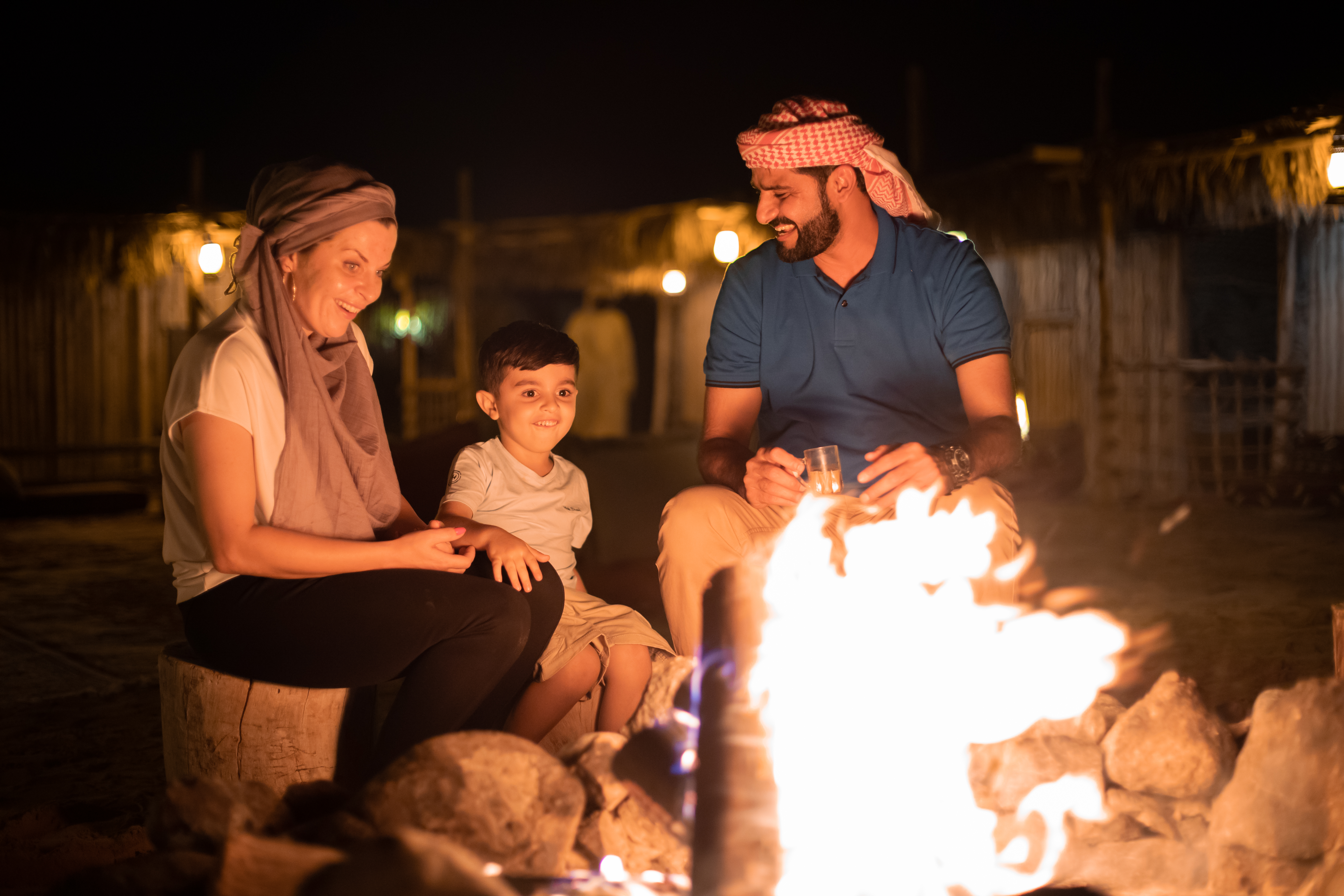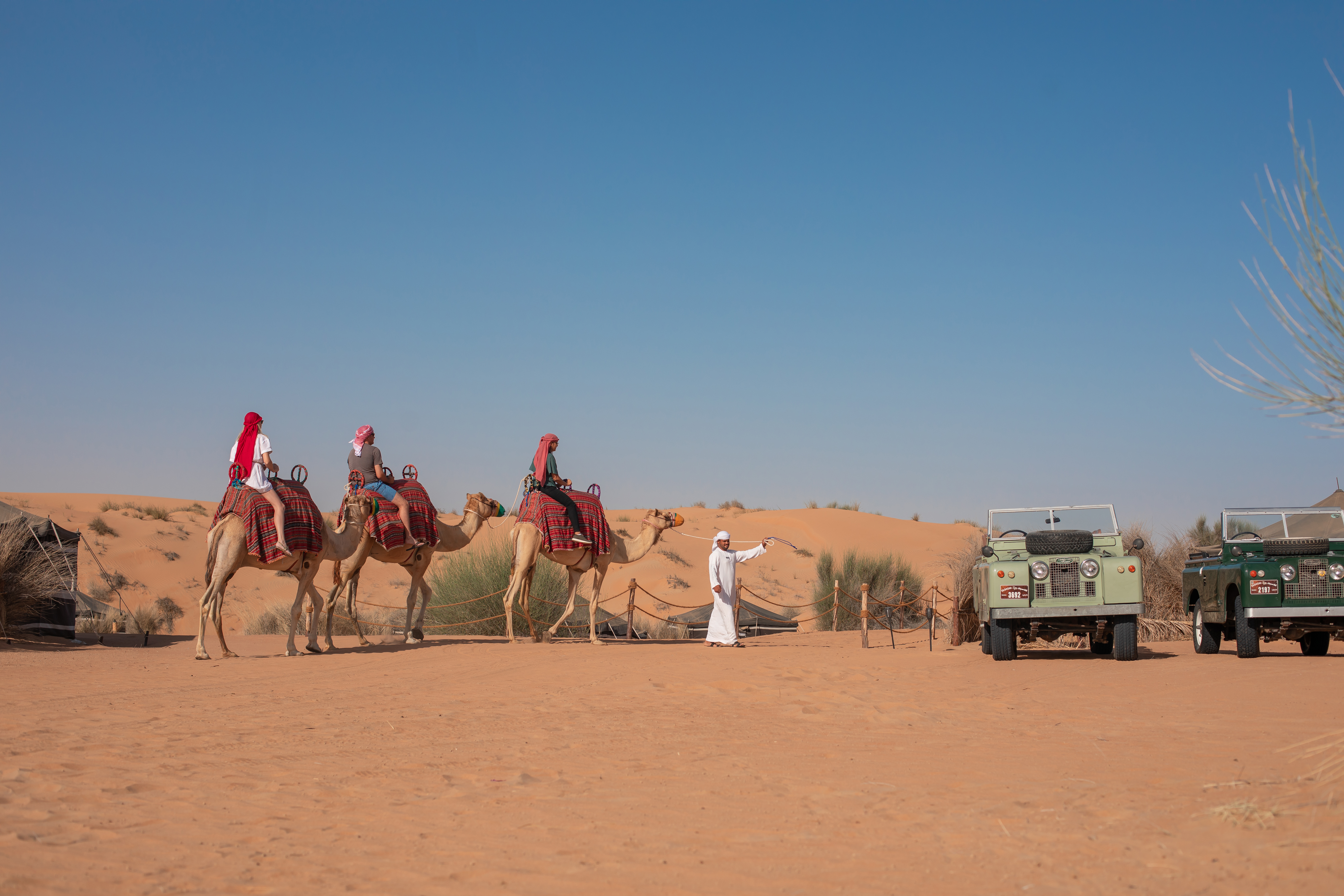 Pase la noche en un entorno que recuerda al Dubái de los años 50. Sumérjase en la cultura con actividades fascinantes como pintar con henna, hornear pan y café árabes y actuaciones tradicionales en nuestro campamento beduino. Disfrute de una cena de cuatro platos de cocina árabe y déjese encantar por la magia de este entorno único bajo las estrellas.
