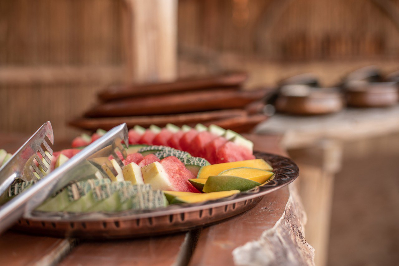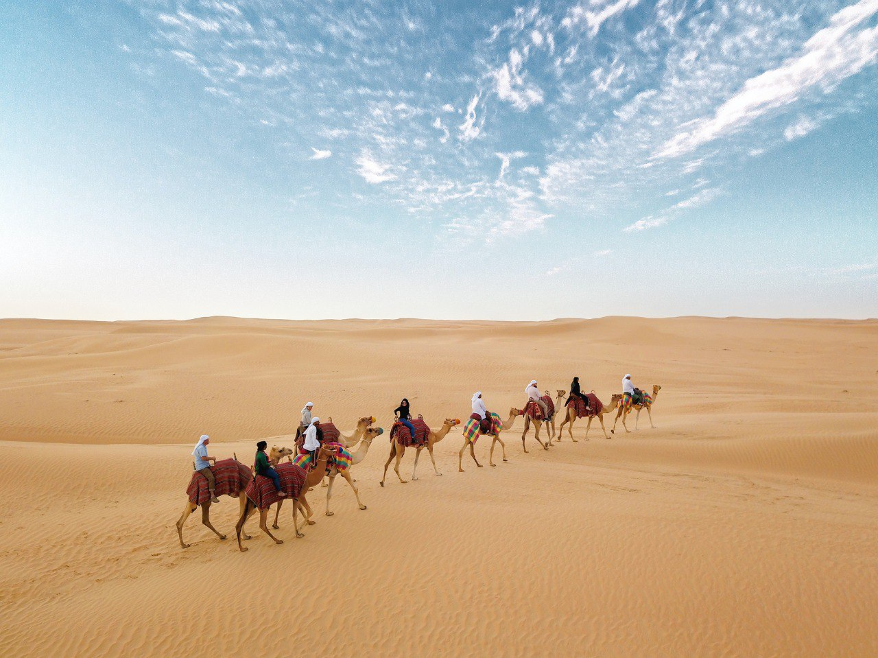 Desayuno emiratí en un campamento exclusivo dentro del retiro desértico de la familia real local.