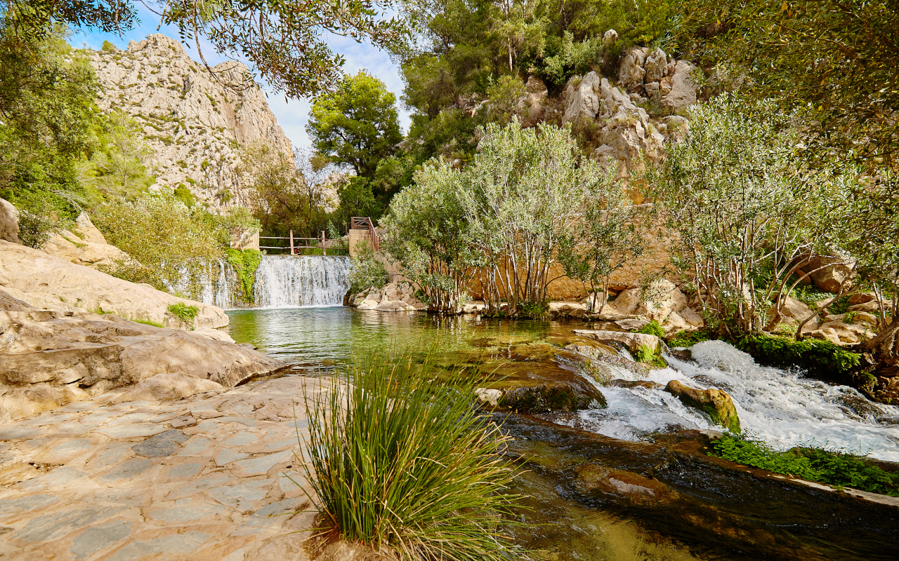 Por la tarde, llegaremos a las Fuentes del Algar, una reserva natural con cascadas y piscinas donde podrás relajarte al aire libre. Dispondrás de unas dos horas para explorarla a tu aire, acercarte a la zona del Arboretum o al Estret de Sacos. Y si lo deseas, es un lugar perfecto para darte un baño refrescante antes de emprender el regreso a Alicante.