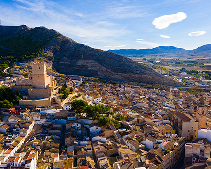 Esta villa, ubicada en las estribaciones de la Sierra de Salinas, tiene una larguísima historia, que se remonta al Paleolítico Medio y seguramente es la zona con más biodiversidad de la provincia de Alicante, pues aquí se pueden ver con facilidad ginetas, gatos monteses, jabalíes, conejos, aves rapaces y perdices.