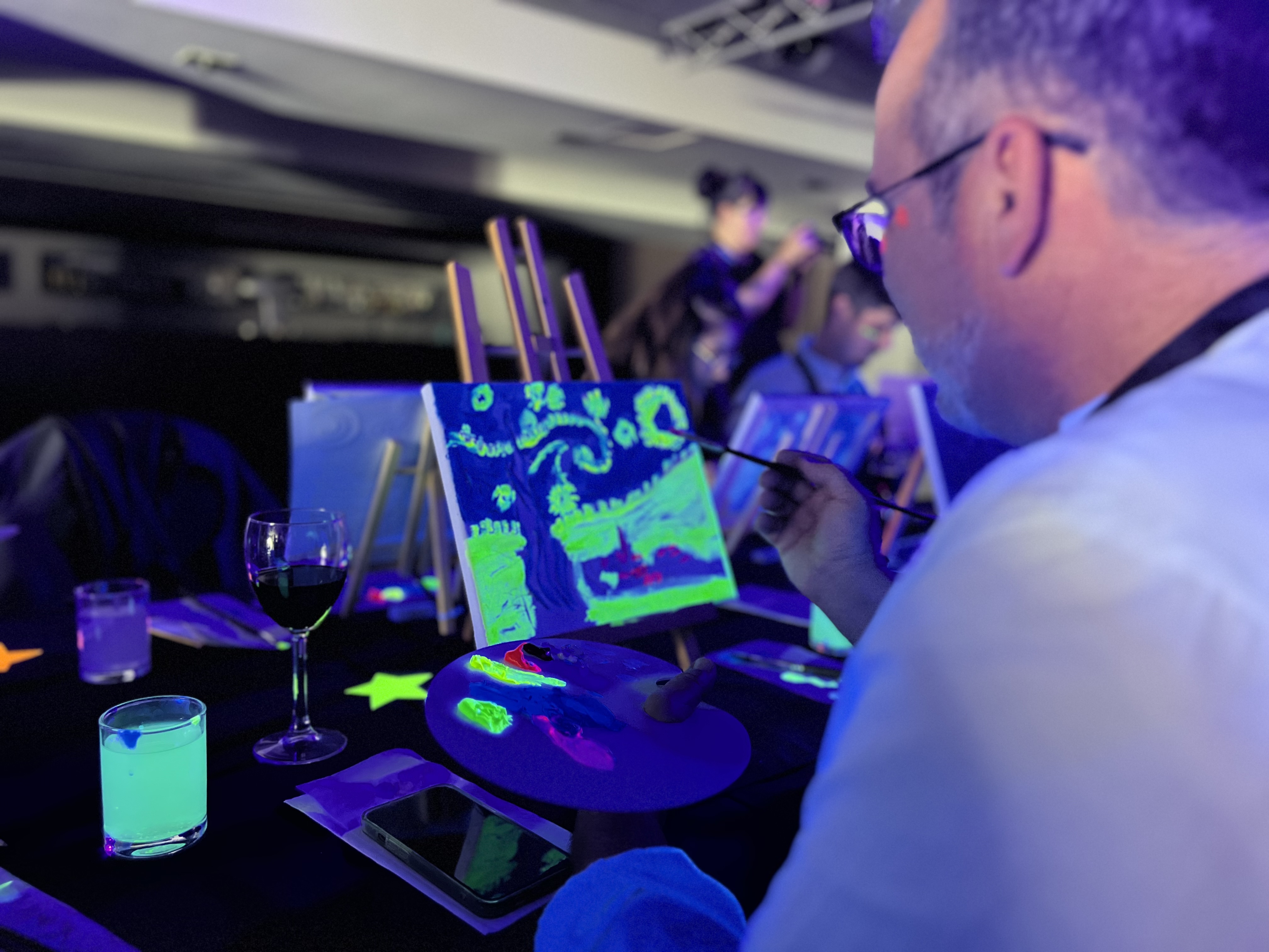 Ven a disfrutar de una tarde con nosotros donde podrás convertirte en un verdadero artista y disfrutar de una experiencia diferente en la que aprenderemos técnicas de pintura con luces de neón y disfrutando de los mejores vinos de la casa.