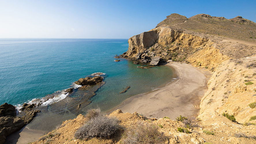 La cala de Los Amarillos es una más de las atractivas entre las que salpican el litoral del Parque Natural del Cabo de Gata-Níjar .