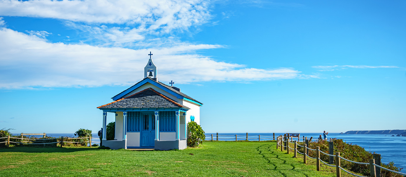 Con la mirada puesta en el mar, este pequeño templo acoge, el último domingo de agosto, una de las fiestas más singulares de Asturias