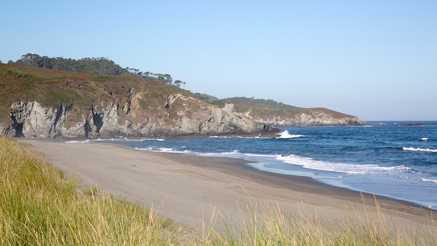 Se sitúa en el concejo de Navia, muy próxima a la población marinera de Puerto de Vega y está cubierta por un arenal grueso y oscuro de algo más de 800 metros de longitud. Por lo demás, esta playa se sitúa en medio de un paraje de especial valor natural, con dunas y la presencia de especies tan escasas como el cormorán moñudo o la planta Otanthus maritimus (algodonosa).