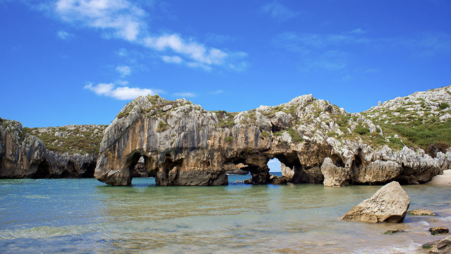 Cuevas del Mar es una de las playas más concurridas de Llanes puesto que es un lugar bellísimo pero de fácil acceso, lo que la convierte en un destino muy popular sobre todo en verano. En forma de concha, este arenal dorado está protegido por su vida natural y también por las formaciones geológicas que ha ido creando el mar con su erosión y que le dan nombre.