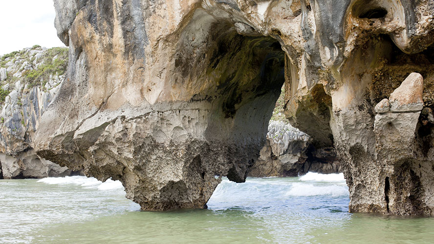 Cuando baja la marea es fácil recorrer algunos de estos espacios a lo largo de pasadizos perfectamente tallados e incluso descubrir algunos rincones secretos donde las olas del mar Cantábrico, bravo por naturaleza, resuenan como si fueran un órgano marino.