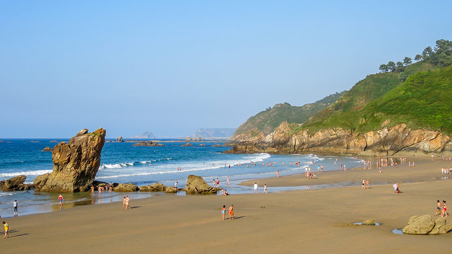 Desde Niembru se llega a la playa de Torimbia donde desde su mirador se obtiene una amplia panorámica. Fíjate en la escultura que preside el lugar, se llama Estela y fue realizada por Ernesto Knorr. La última parte del sendero lleva por una zona de meseta desde donde se ve el Cantábrico y, a lo lejos, los Picos de Europa, para seguir bajando por el Cerro La Cuestona que lleva a la antigua carretera de Llanes, antes de terminar en la playa de San Antolín. Como siempre, os recomendamos descargaros una ficha de este camino, aunque sea sencillo.