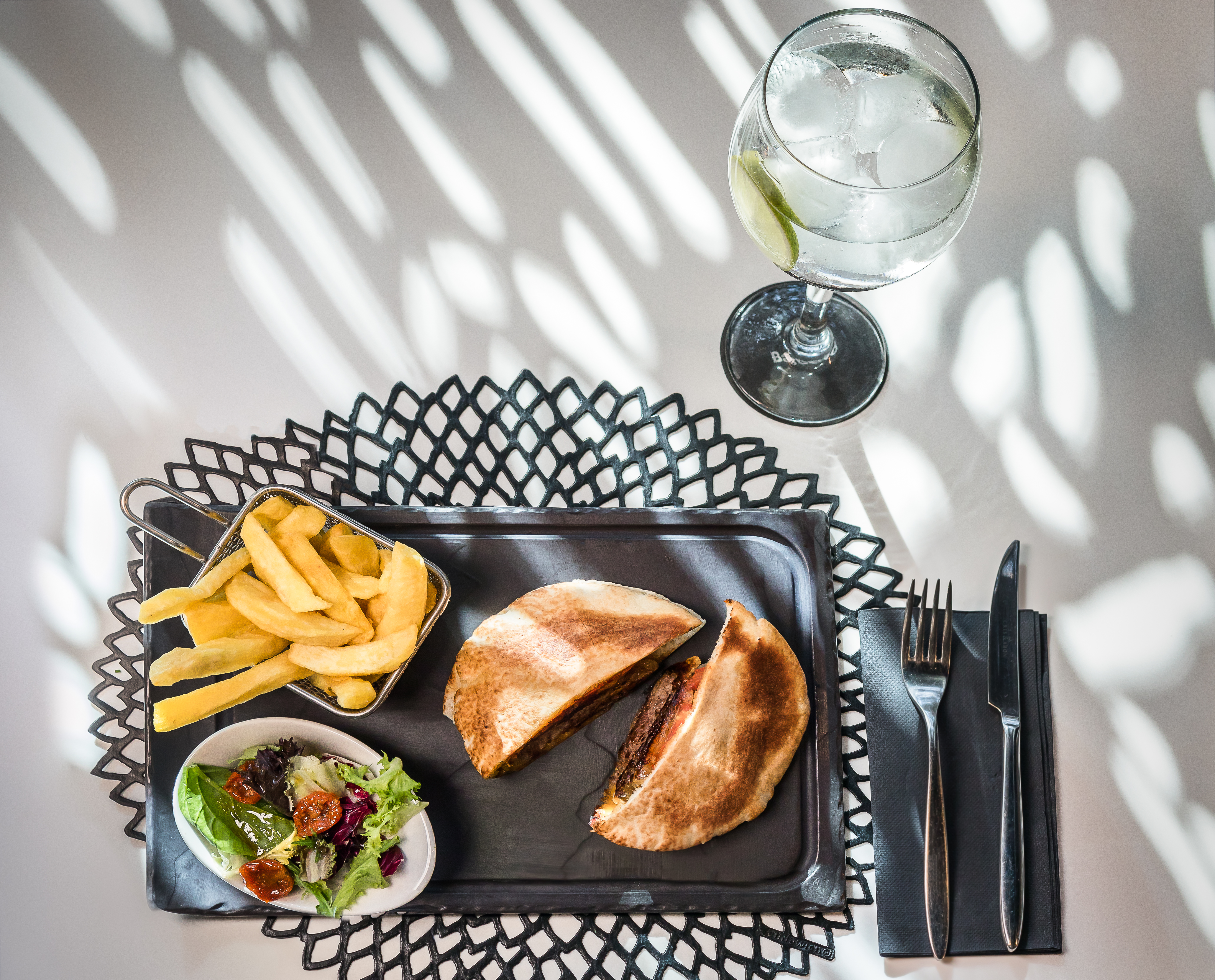 ¡Este delicioso menú está pensado para quienes disfrutan de mancharse las manos con una buena hamburguesa! El Burger & Gin incluye nuestra Raval Burger casera, servida con pan de pita, y el goloso brownie de chocolate negro con helado de haba tonka, nuestro postre más vendido. Para completar la experiencia, después de la cena, te invitamos a subir al Rooftop 360 en la planta 11 del hotel para disfrutar de un delicioso Gin Tonic, también incluido en el menú.