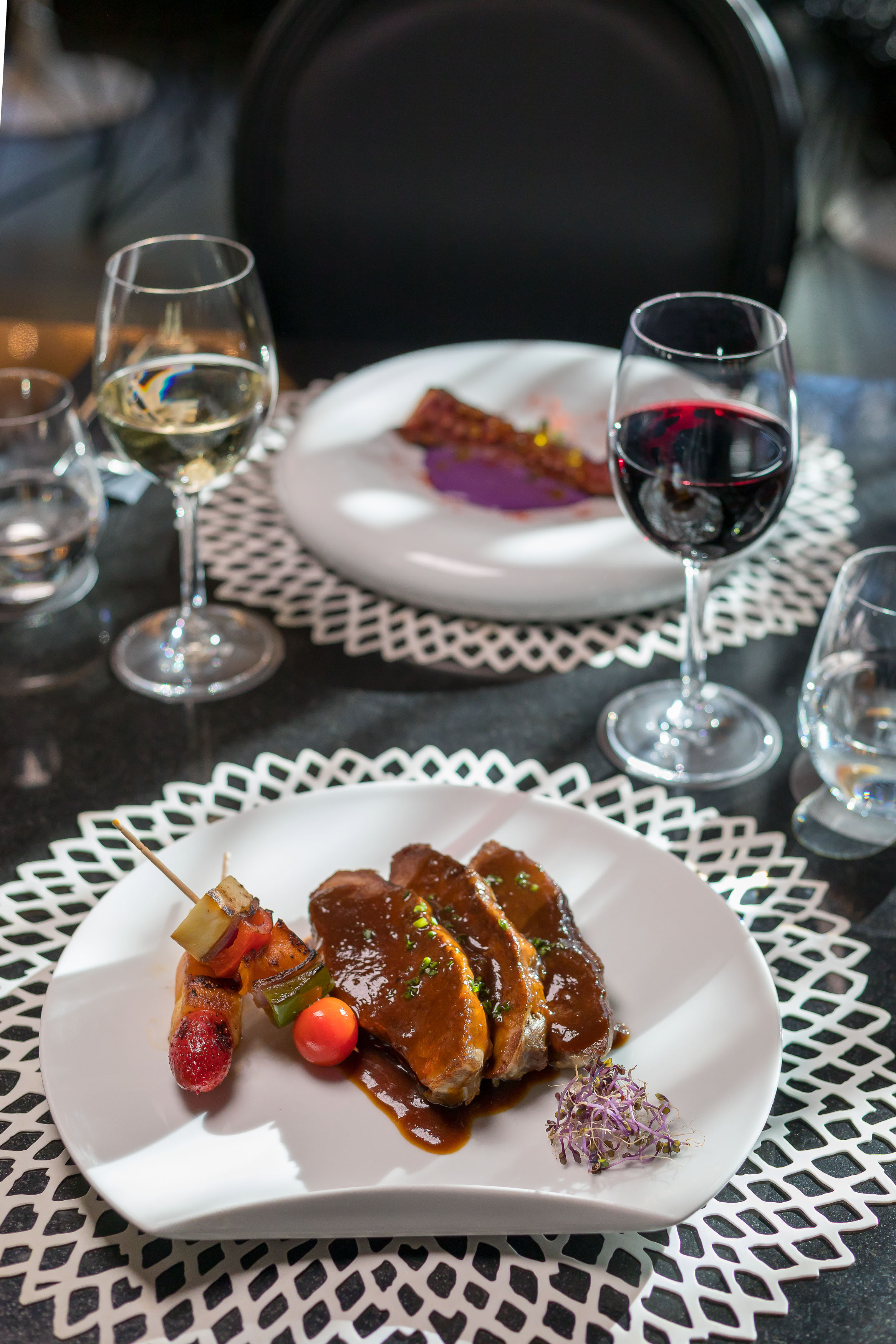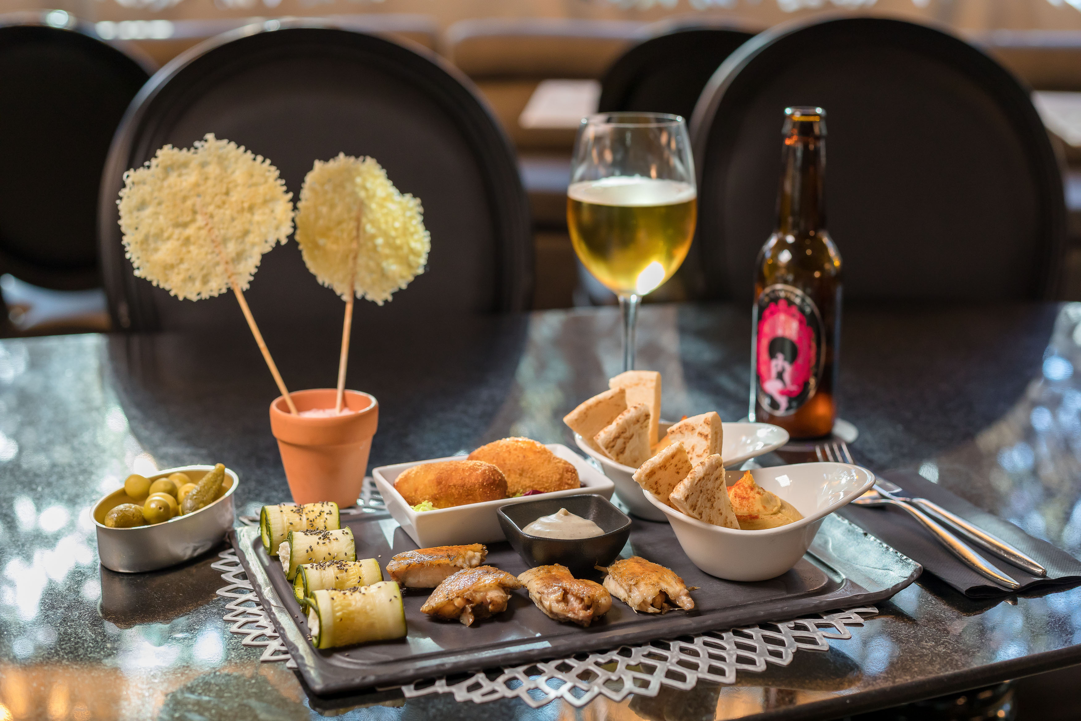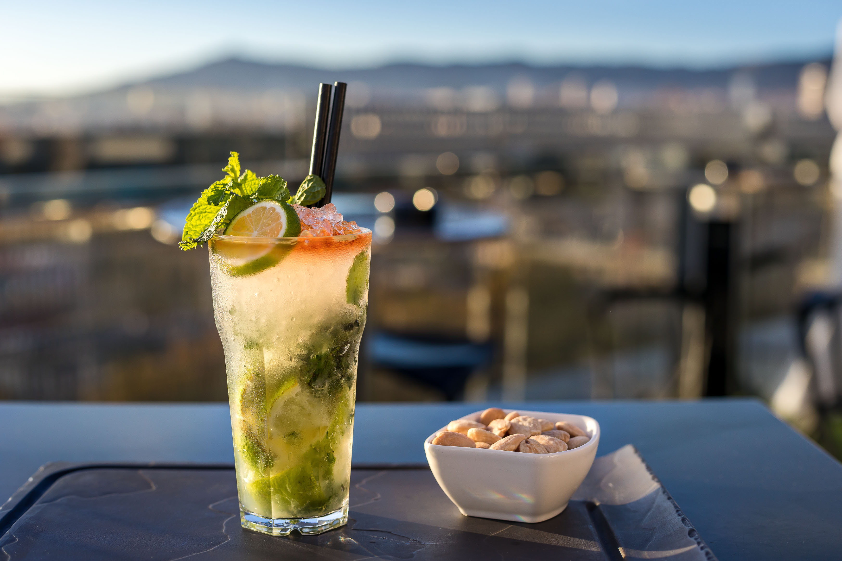 Este menú recoge los platos estrella de la original y deliciosa carta del restaurante del hotel, empezando con unas tapas para compartir creadas con mucho cariño por nuestro equipo de cocina. Se sigue con un delicioso plato principal, y para acabar, nuestros golosos postres caseros. Todo hecho de forma que ofrezcamos un menú original y rico, con materia prima local y recetas propias. Después, podrás poner el broche de oro a tu noche degustando un mojito servido en nuestra azotea (incluido en el menú), en la planta once del hotel, situada en una ubicación privilegiada con las mejores vistas panorámicas a la ciudad.