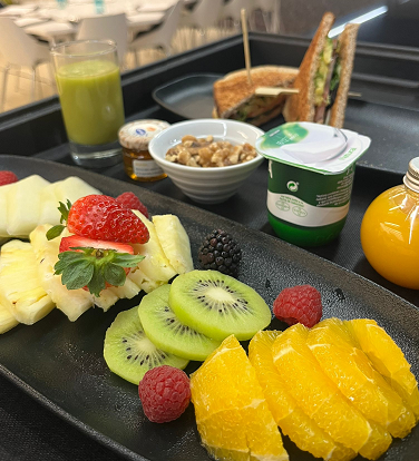 En el Orbital Bar del Barceló Sants, puedes disfrutar de un desayuno que combina sabor y bienestar. Este desayuno orgánico está pensado para quienes desean una opción saludable sin renunciar al buen sabor. La variedad de productos frescos y de calidad incluye frutas frescas de temporada, yogur natural con frutos secos y miel, panes integrales, y un delicioso sándwich de aguacate, tomate y lechuga. Además, podrás acompañarlo con un smoothie revitalizante y un zumo de naranja natural para empezar el día con energía.