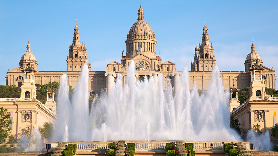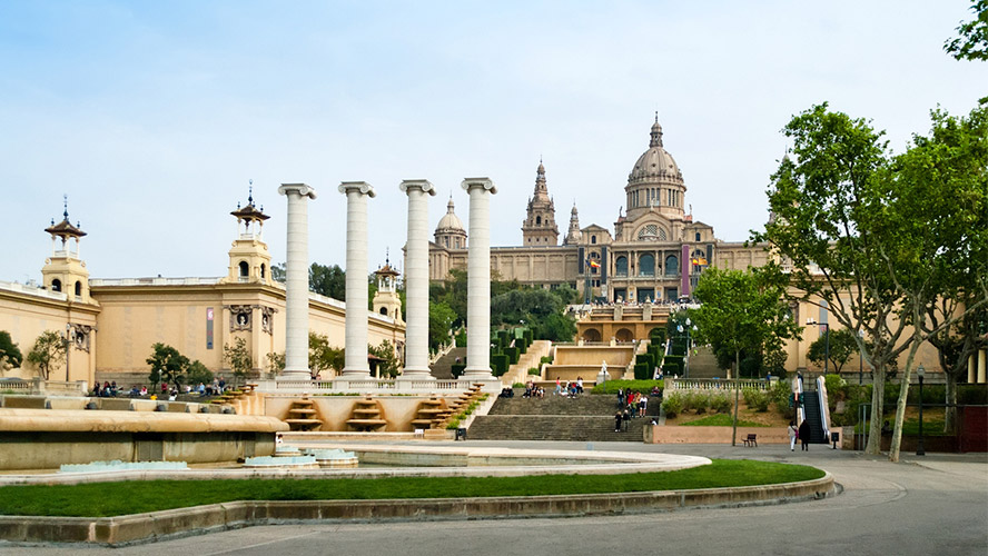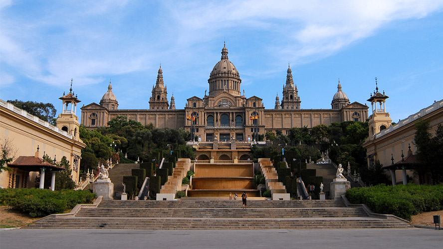 No podría tener mejor envoltorio este templo del arte de Barcelona. El Palau Nacional de Montjuïc es el edificio que alberga el Museu Nacional d’Art de Catalunya (Museo Nacional de Arte de Cataluña o MNAC). Sin pretenderlo, realizarás dos visitas imprescindibles en un solo desplazamiento, porque admirarás las obras albergadas en el museo al mismo tiempo que recorres un monumental palacio levantado con motivo de la Exposición Internacional de 1929. Externamente, la construcción impresiona por su dimensión, casi 50.000 metros cuadrados, y por su estilo adscrito al clasicismo académico. Desde lejos, lo que más llama la atención es una enorme cúpula inspirada en la basílica de San Pedro del Vaticano. A ambos lados de la misma se sitúan cuatro torres, que se asemejan a las de la catedral de Santiago de Compostela. Teniendo a estos dos templos como ejemplo, ya puedes imaginar la impresión que tendrás al verla frente a ti. Y te espera lo mejor: las colecciones artísticas de su interior.