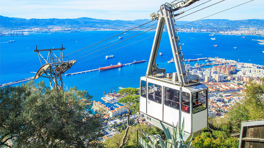 Teniendo en cuenta que el perfil más visible desde la lejanía es el promontorio rocoso, es lógico que la primera tentación cuando se visita Gibraltar sea subir hasta la cumbre. Aún más cuando se puede hacer cómodamente en teleférico. Para ello, deberás atravesar la población hasta la base del mismo y subir en una cabina que te llevará a la Guarida o a las terrazas superiores. En la Estación Superior se encuentra una cafetería, donde podrás tomar algo y admirar las panorámicas.
