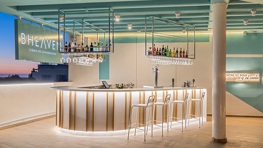 La espectacular Terraza B-Heaven es el lugar de encuentro ideal para tomar un combinado o un cóctel con amigos al atardecer o cuando se extienda el manto de estrellas. Este espacio de ocio nocturno conileño no es de uso exclusivo para los clientes del hotel, así que te recomendamos que lo conozcas a fondo, y disfrutes de las vistas y del buen ambiente que se genera cada día.