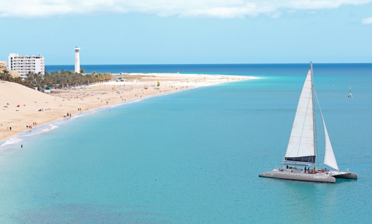 Ven y navega con nosotros, un día perfecto para relajarte en un ambiente agradable y descubrir los impresionantes colores turquesa del mar a lo largo de la costa sur de Fuerteventura.