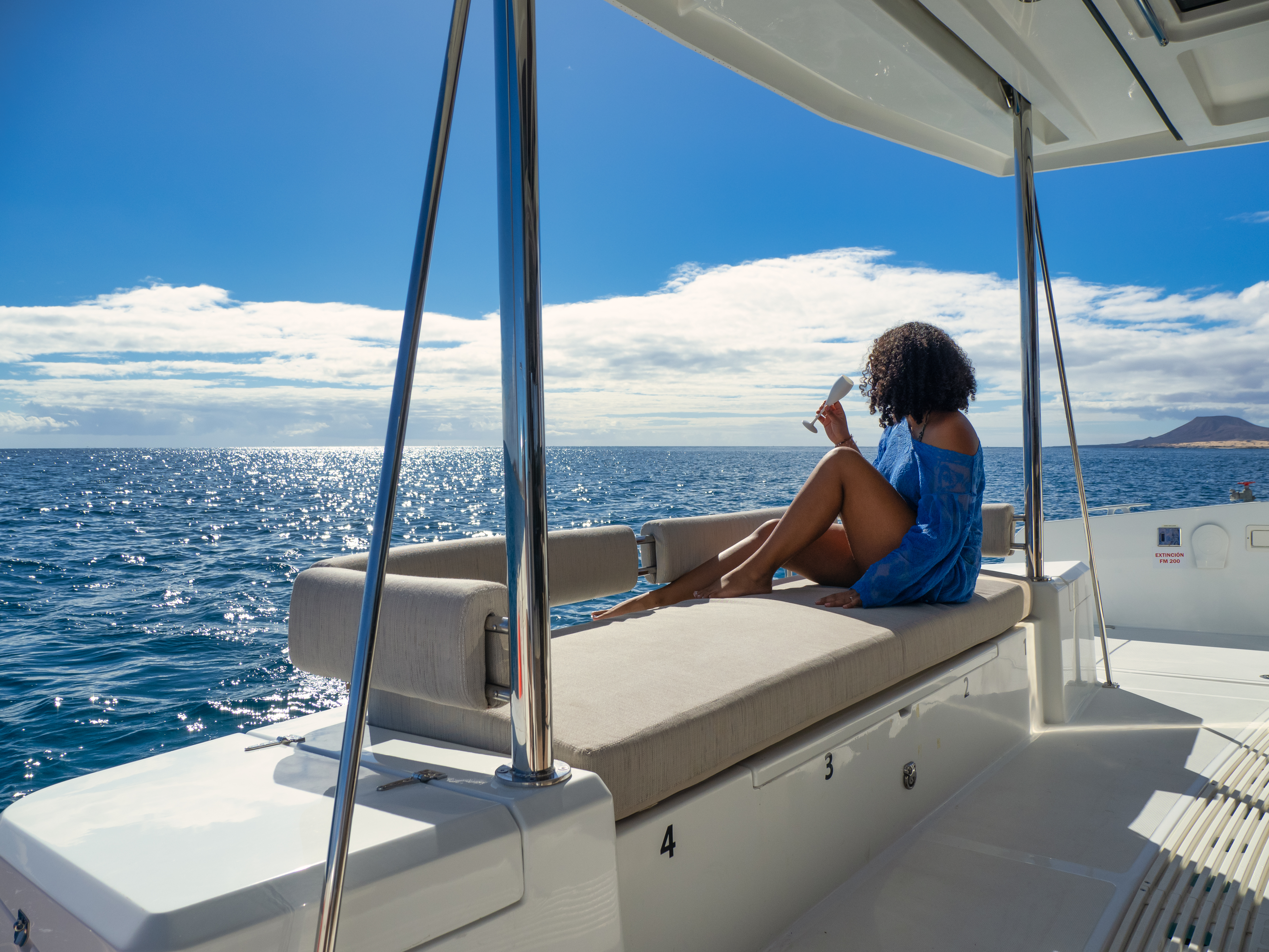 Sumérjase en el mar y el sol con la máxima comodidad y lujo a bordo de nuestro catamarán Bali 4.2, una auténtica joya en Fuerteventura. Nos dirigimos hacia Lobos, donde fondearemos en sus aguas cristalinas, brindándole la oportunidad de participar en diversas actividades y disfrutar de un almuerzo exquisito.