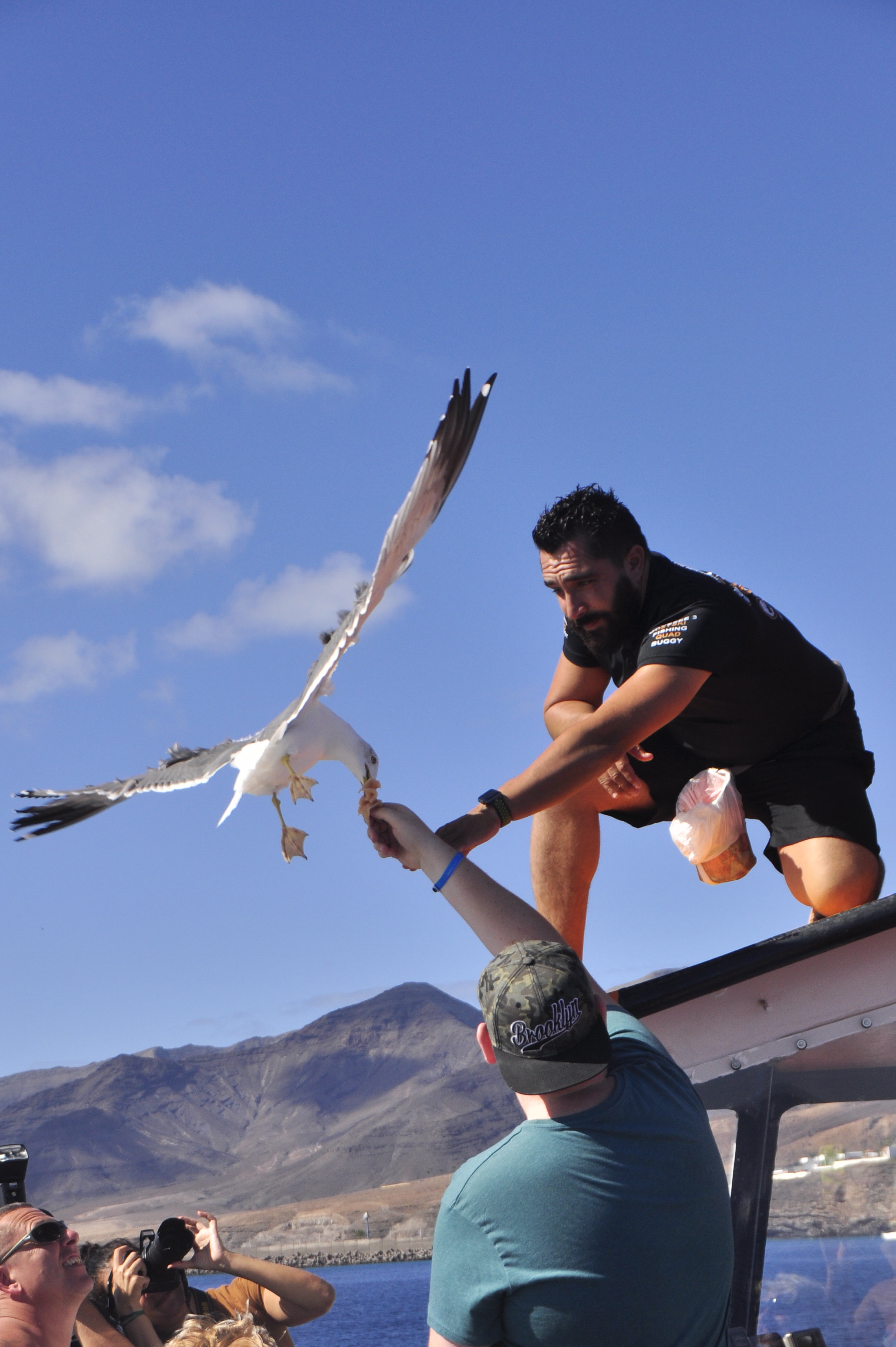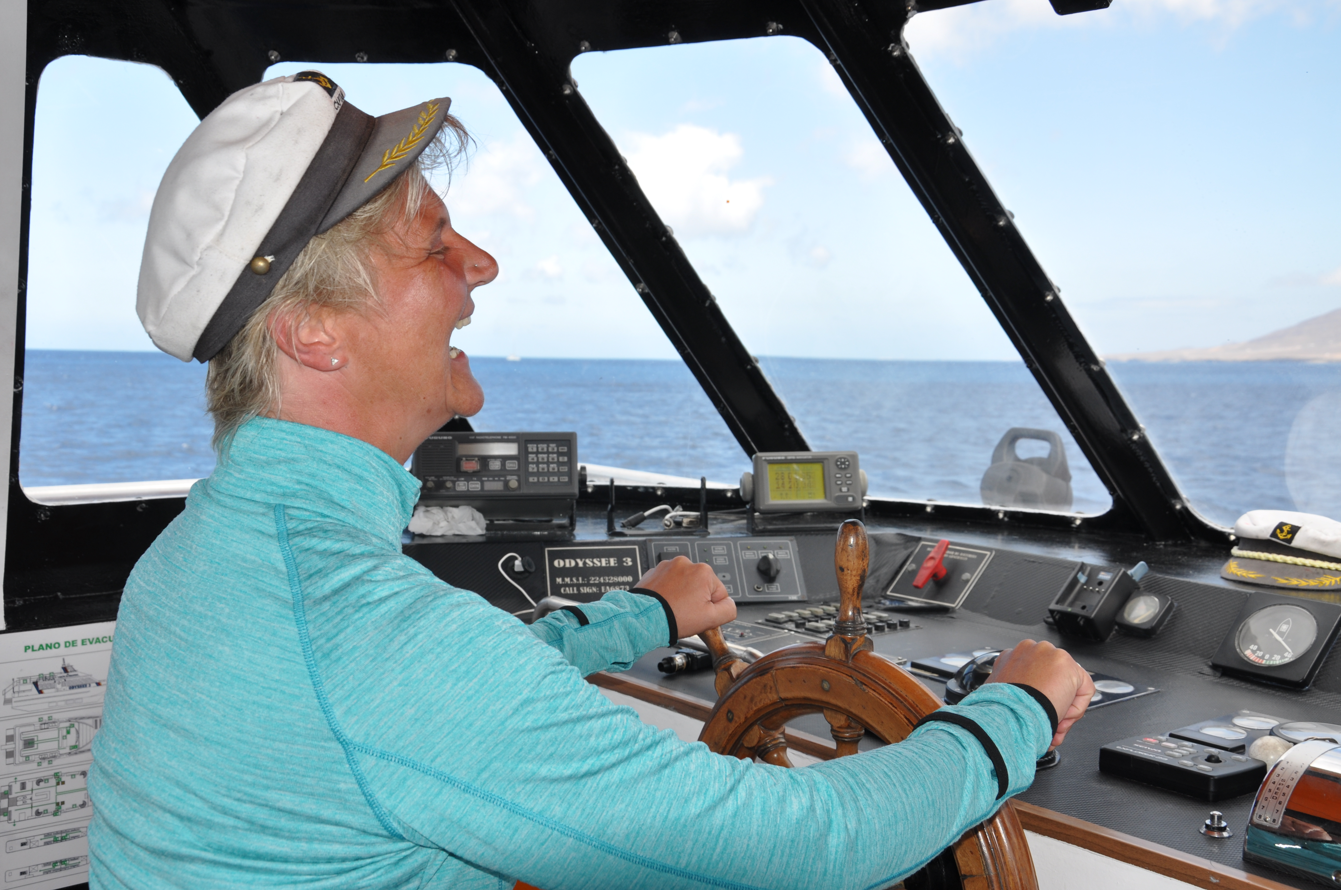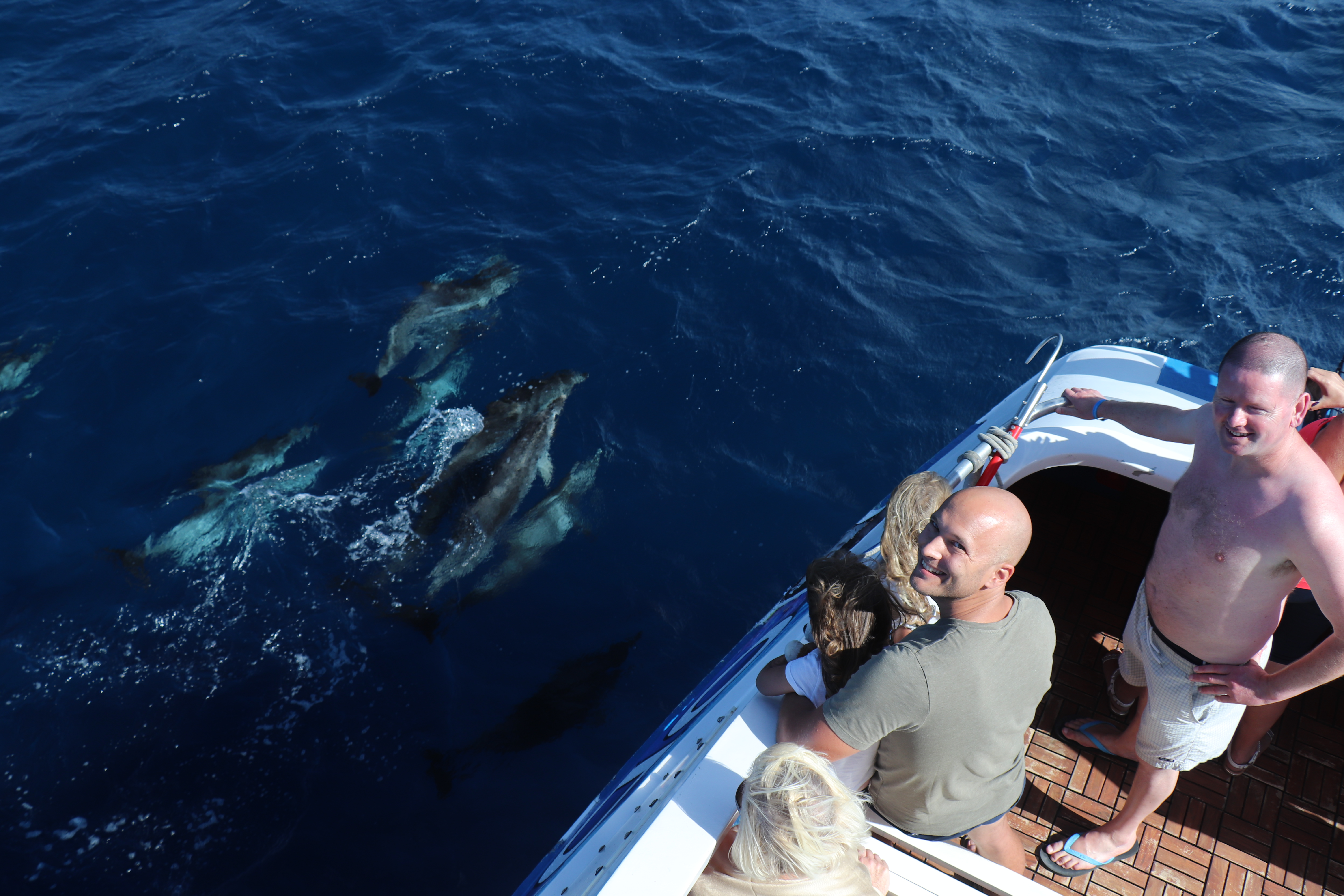 En aguas abiertas, estaremos atentos a la posibilidad de avistar diferentes variedades de peces, tortugas, delfines o ballenas en medio del Parque Natural de Jandía. Tendrás la oportunidad de descender a nuestra área de visión submarina para ver de cerca este increíble espectáculo. Incluso los más pequeños podrán conocer nuestra cabina de mando, una experiencia que jamás olvidarán. Uno de los pocos barcos en la isla con bandera azul, autorizado para realizar avistamientos de cetáceos.