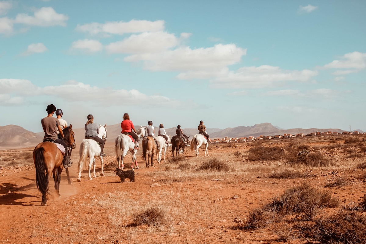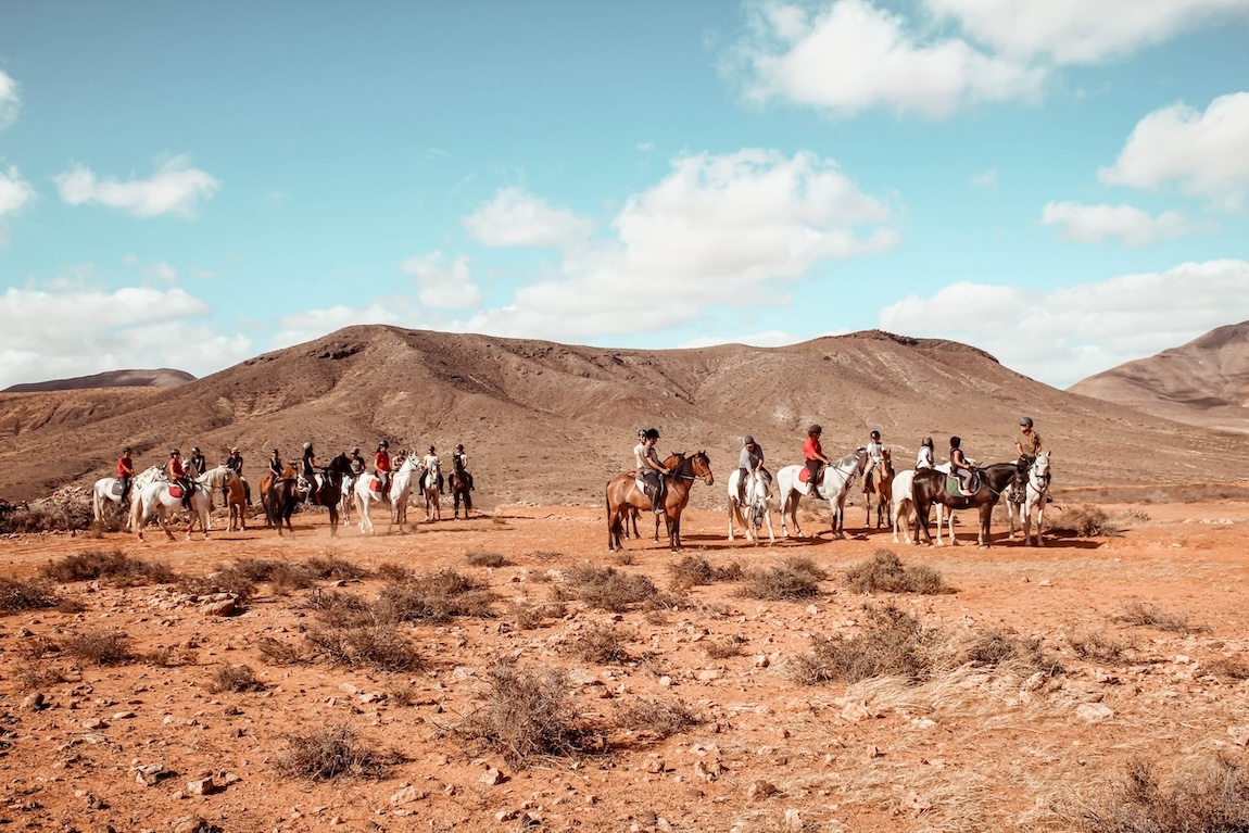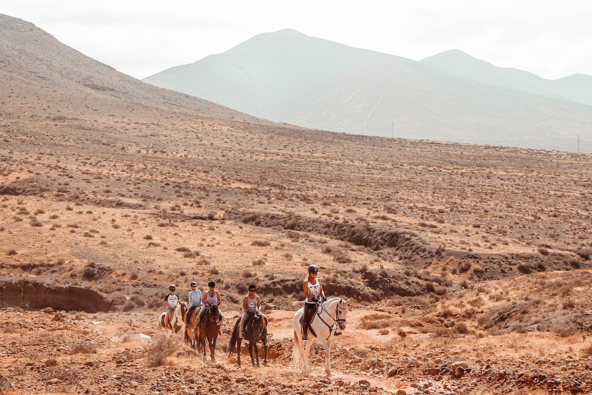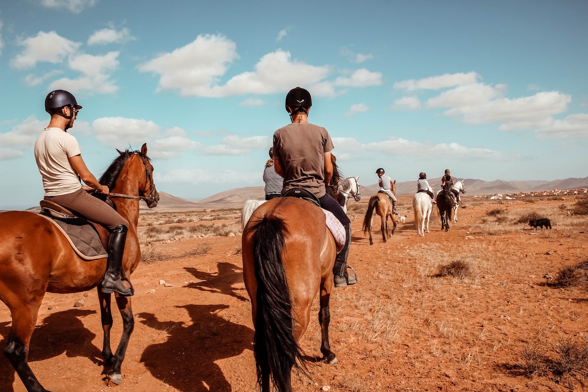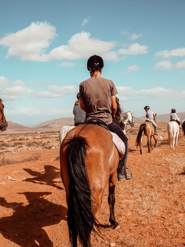 Ofrecemos rutas de 1 y 2 horas con servicio de recogida y regreso desde Caleta de Fuste. Nuestras excursiones son tranquilas y relajadas, adecuadas para todos los niveles, incluidos principiantes y familias con niños a partir de 6 años. Para su seguridad, irá acompañado por nuestros instructores experimentados, quienes le brindarán orientación valiosa durante toda su aventura ecuestre.