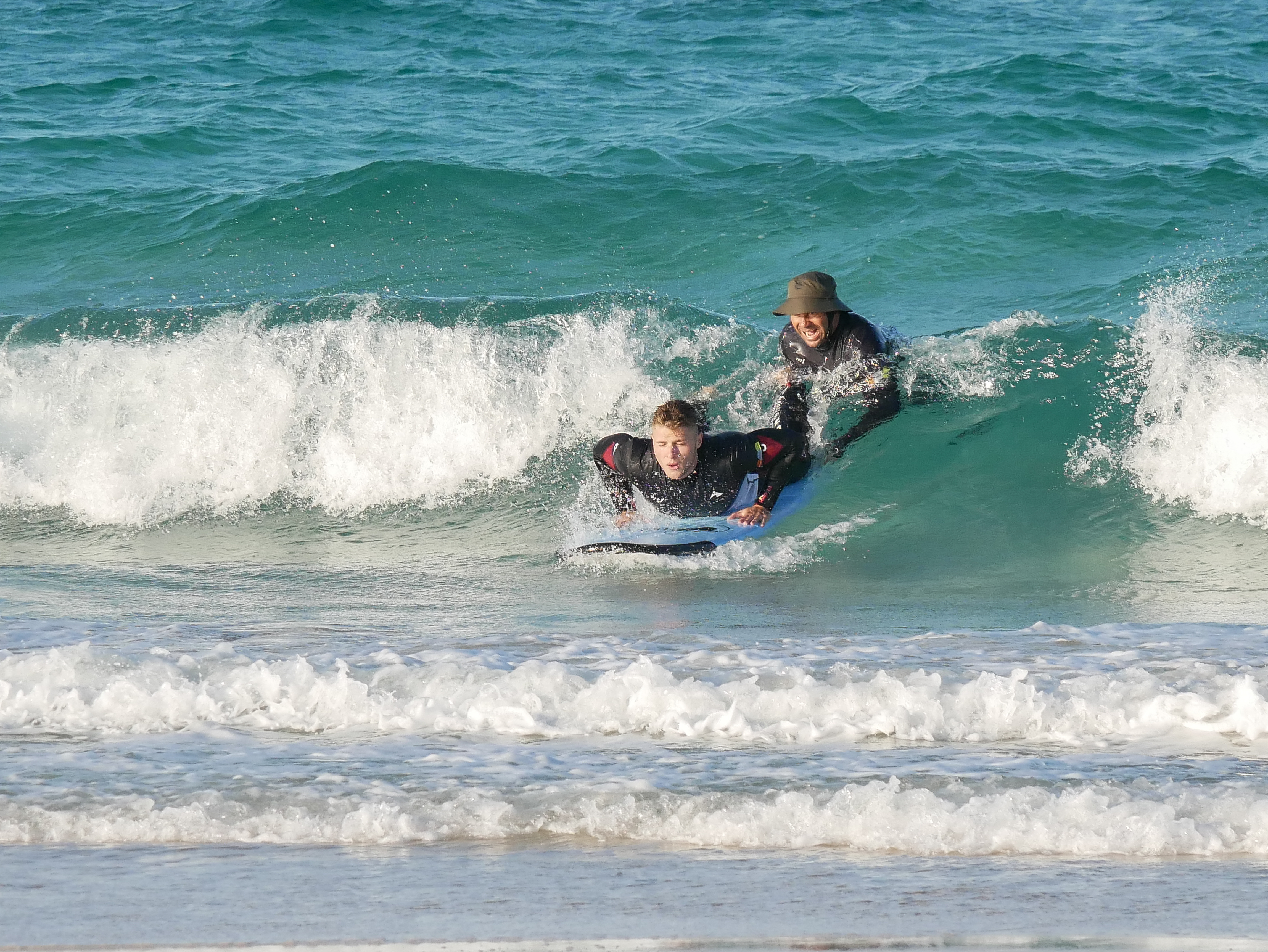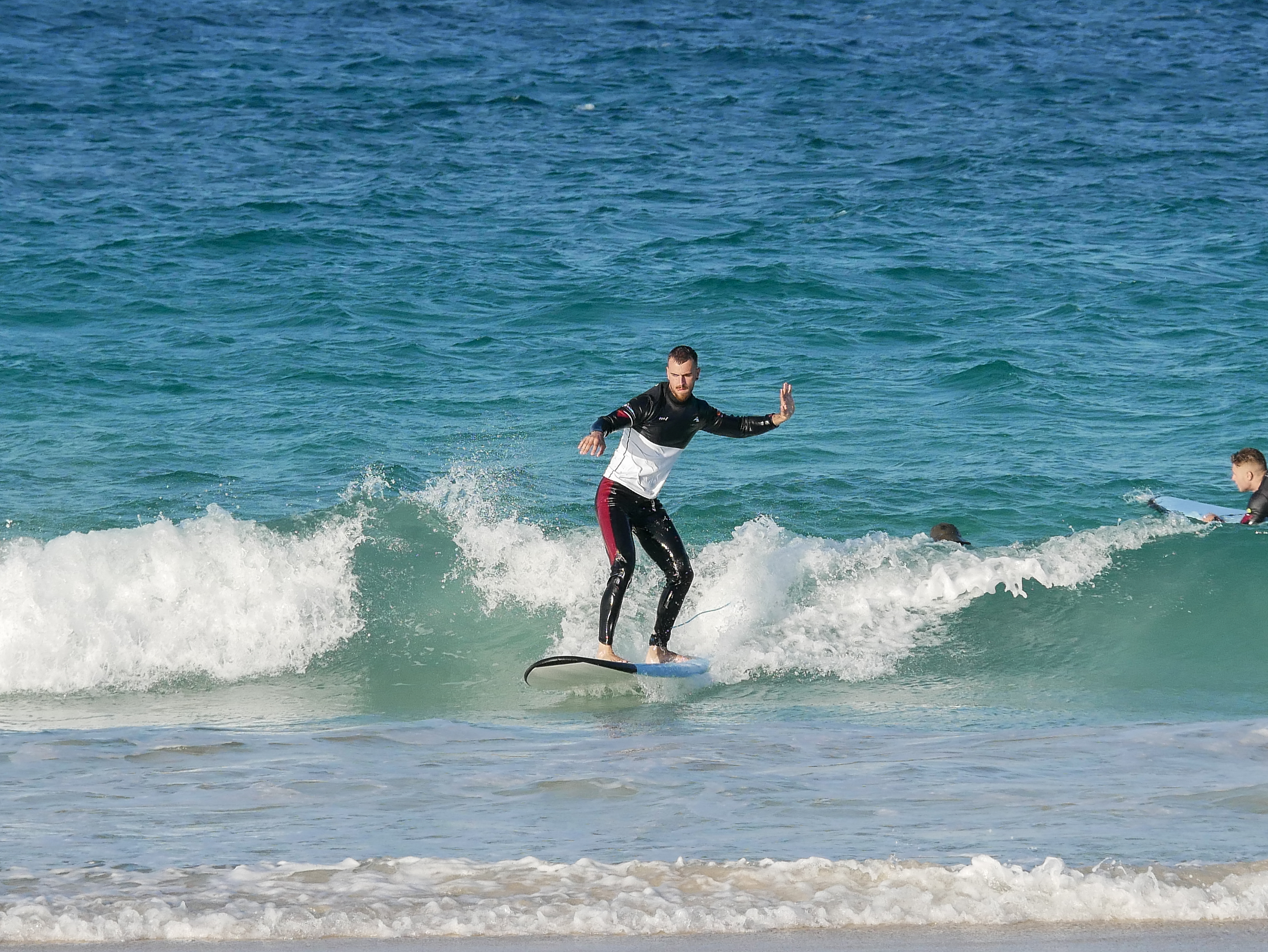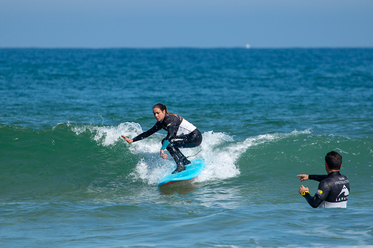 Al llegar a la playa, os explicaremos las corrientes marinas, daremos las instrucciones de seguridad y practicaremos movimientos básicos en tierra para dominar la postura. Os enseñaremos a remar correctamente, mantener el equilibrio sobre la tabla, poneros de pie, tomar las primeras curvas a izquierda y derecha, deslizaros sobre una ola de espuma, recortar la ola, ganar velocidad y dirigir la tabla de surf.
