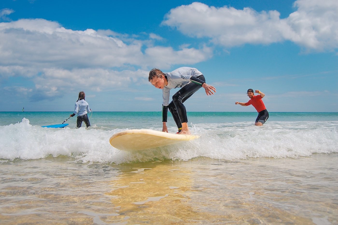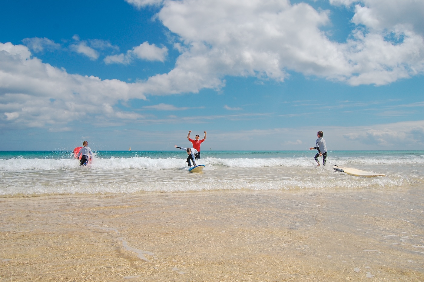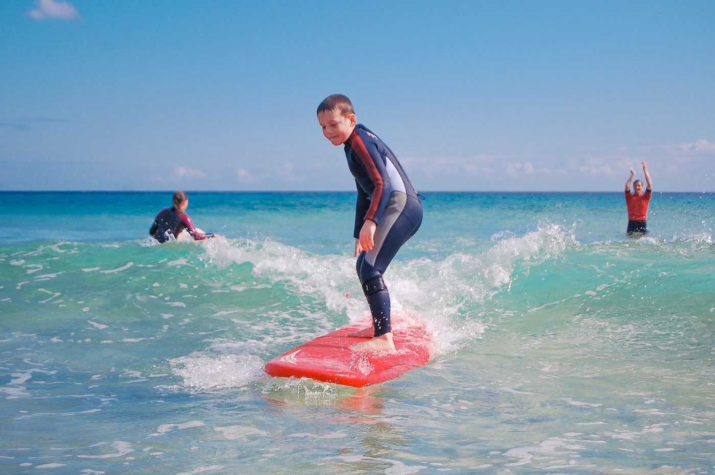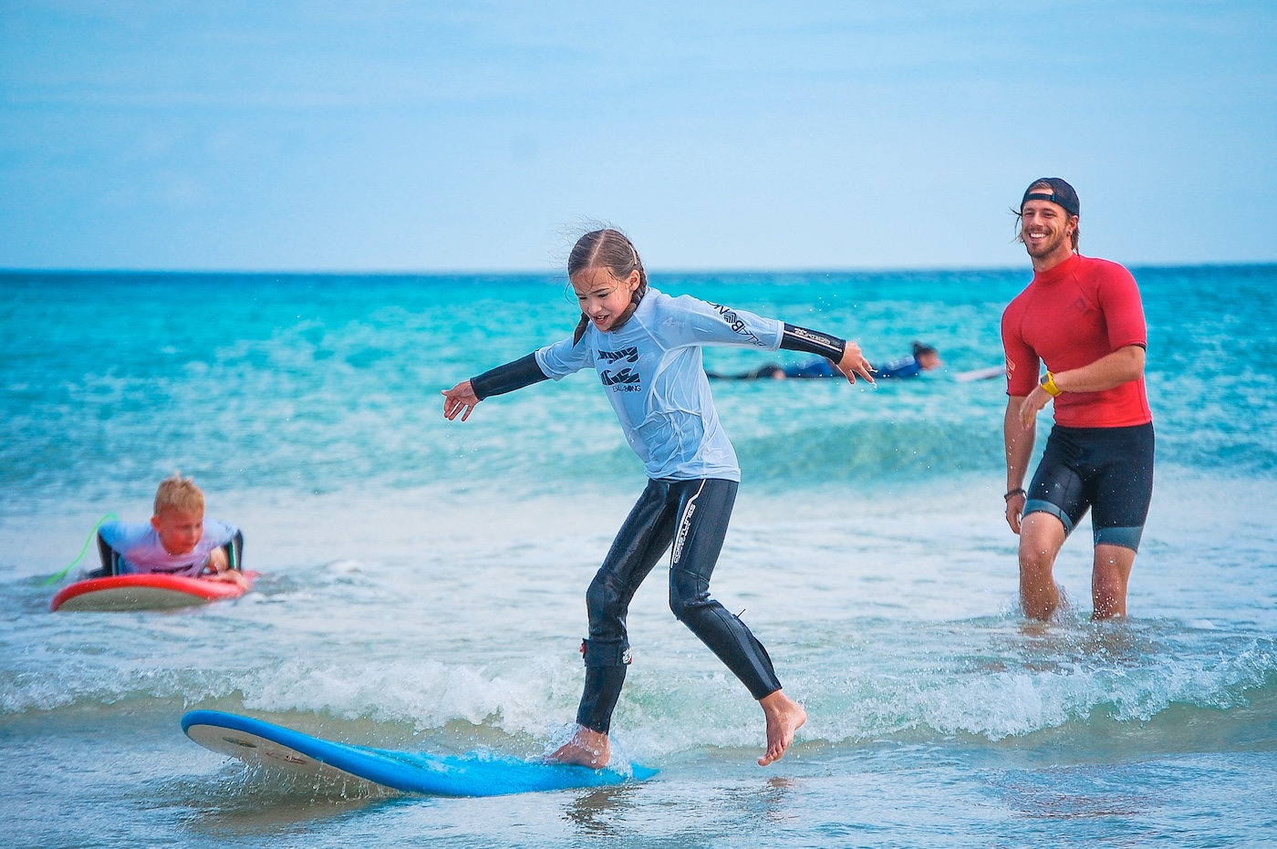 Descubre la diversión del surf para niños y familias en playas de arena blanca y olas suaves, ideales para que tanto adultos como pequeños disfruten surfeando.