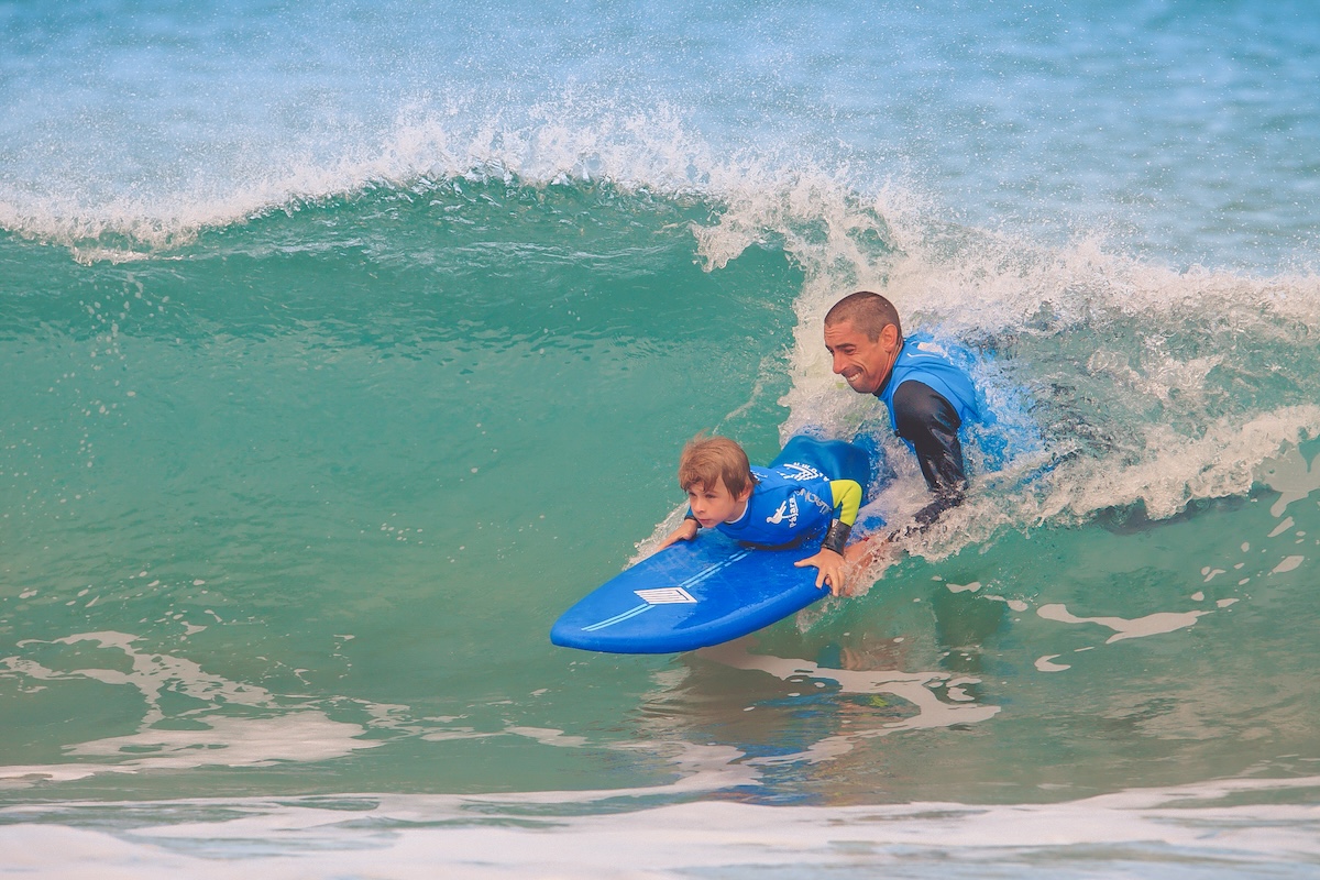 Nuestras clases en aguas poco profundas son perfectas para que niños y adolescentes se inicien en el surf de forma amena y divertida. También representan una experiencia fantástica para toda la familia cuando padres e hijos surfean juntos.