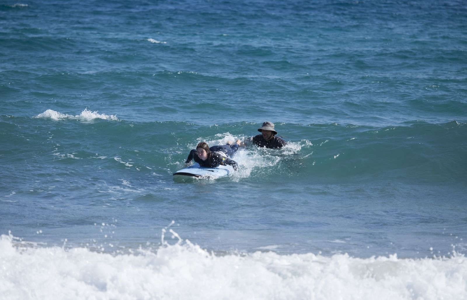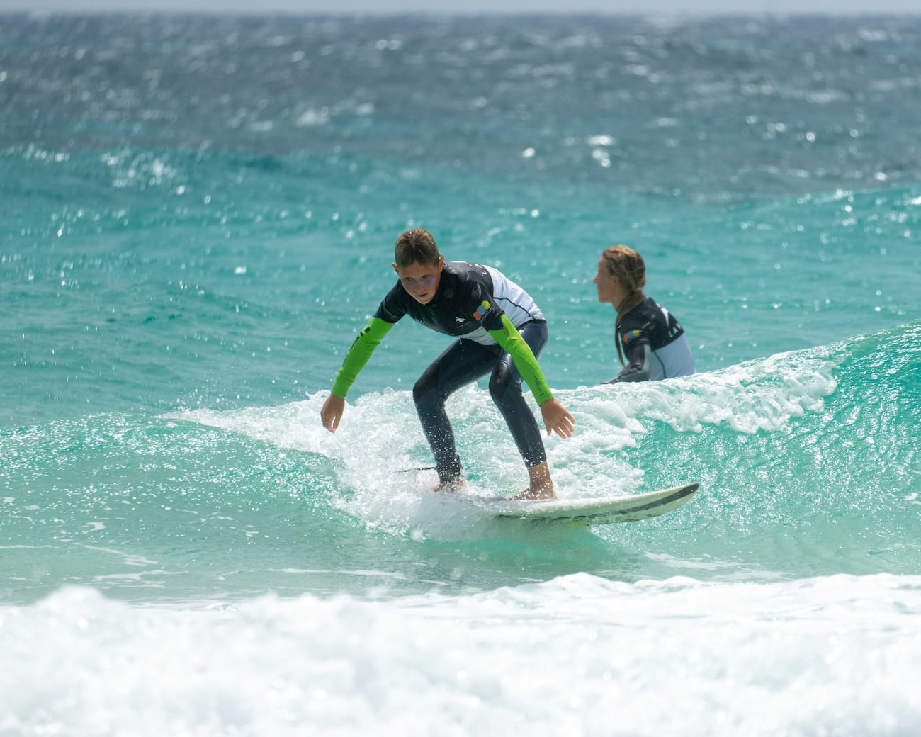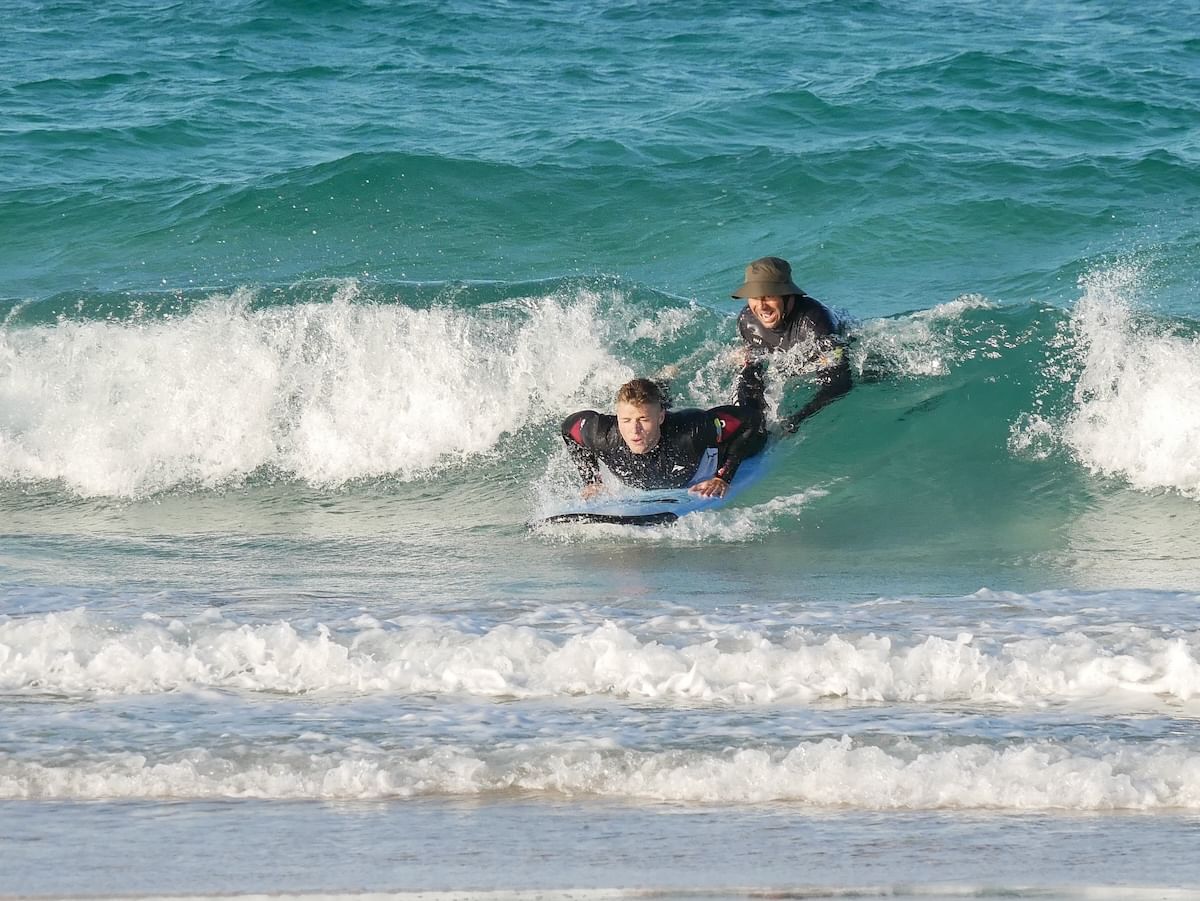 Aprenderás a deslizarte y coger una ola de espuma en aguas poco profundas, recortar la junta del a ola, acelerar y dirigir la tabla de surf. Los instructores te acompañarán siempre en las olas, guiándote en la elección de olas para mejorar tu técnica, asegurando una experiencia segura y divertida.