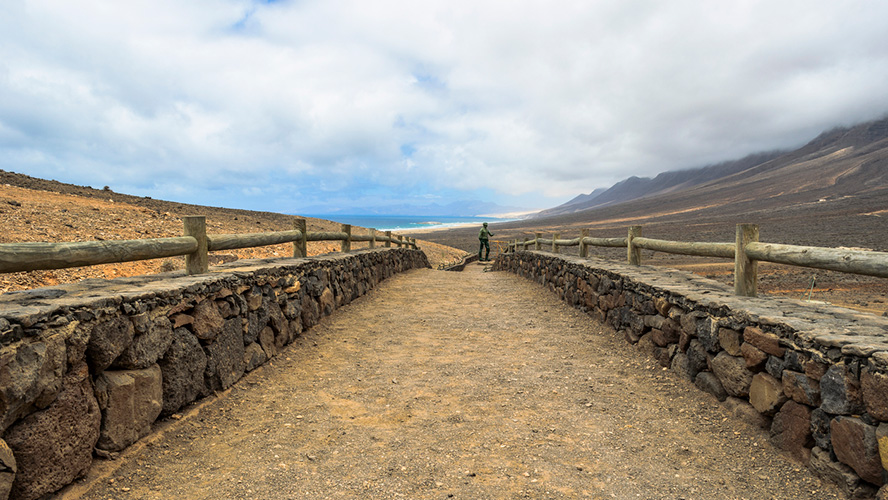 Por las dimensiones del arenal de Cofete, cuando se llega al aparcamiento se debe elegir: ir hacia el norte, para llegar al islote, a 5 kilómetros; o bien al sur, hasta el imponente roque del Morro, a 2,7 kilómetros.