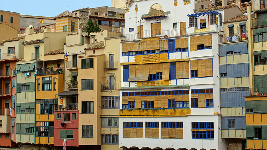 Colgadas sobre el río, estas casas ofrecen una singular mirada a la Girona más tradicional, a la cotidianidad más auténtica, a las luces y sombras de sus habitantes… Las cuerdas con la ropa tendida, la persiana a medio subir, algún desconchón, macetas floridas… No hay artificios.