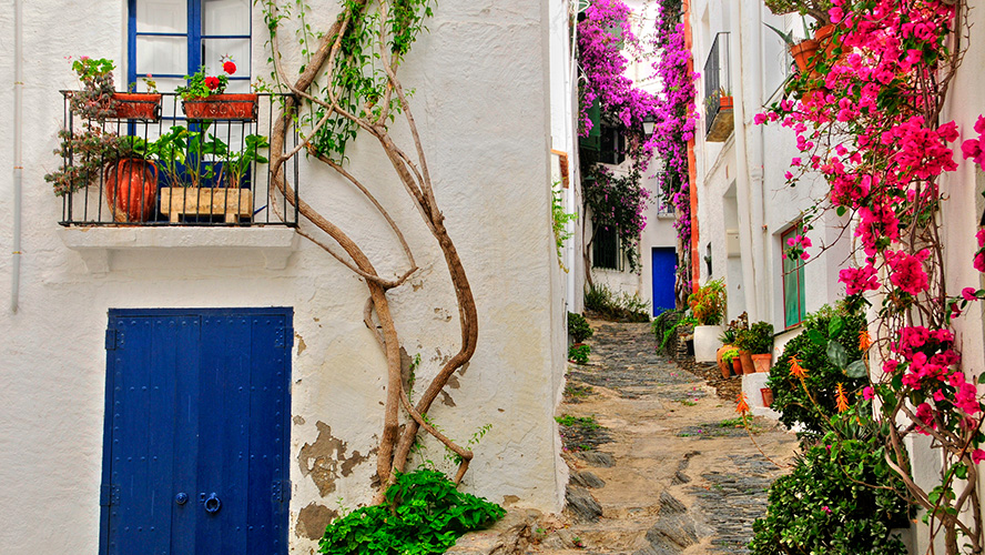 Cadaqués, al primer vistazo, parece una auténtica pintura costumbrista. Un lugar en el que los colores naturales y humanos armonizan a la perfección dibujando un decorado idílico en el que el blanco de las casas, el azul de cielo y mar y el verde esmeralda que tapiza el fondo de sus calas son protagonistas de la paleta de colores.