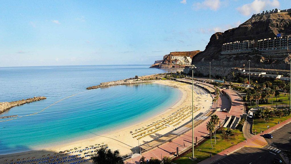 La Playa de Amadores se encuentra entre inmensas rocas, estando protegida del viento. La construcción artificial con arena blanca en combinación con agua cristalina crea un color azul único. Esta playa tranquila en el suroeste de Gran Canaria cuenta con una bahía de aguas en calma y sin oleaje, sus suaves arenas blancas y doradas nos invitan a relajarnos tanto a adultos como a niños, siendo un lugar muy agradable para disfrutar del sol y del mar.