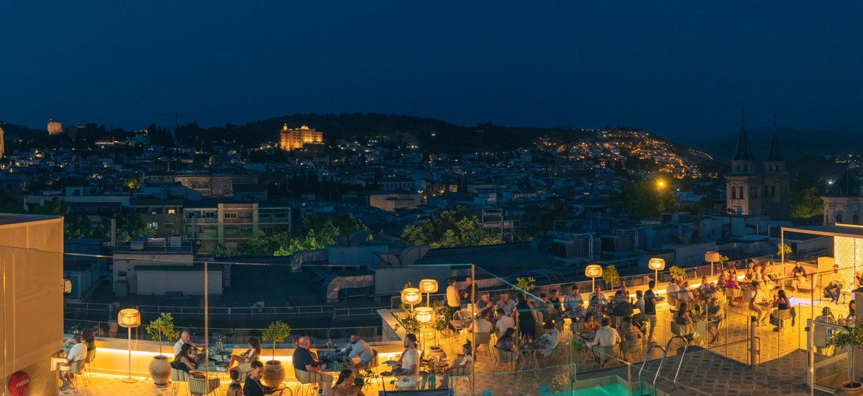 Descubre la experiencia gastronómica más exclusiva de Granada en el rooftop con las mejores vistas a la Alhambra y toda la ciudad.