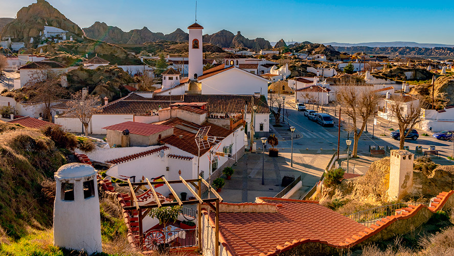 Las casas cueva de Guadix son el gran tesoro arquitectónico y cultural de esta localidad y su importancia es tal que la extensión del Barrio de las Cuevas, un espacio cargado de extrañeza, supera incluso a la del propio casco histórico. Excavadas por el hombre sobre unos terrenos arcillosos, las cuevas han generado un modo particular de vida y sus originales y blancas chimeneas otorgan al paisaje un aspecto muy particular. Sus más de 2.000 viviendas subterráneas habitadas son una de las razones por las que Guadix está considerada la “Capital Europea de las Cuevas”. Hay que recordar que la tradición troglodita de Guadix se remonta muy atrás, incluso a la época de los romanos y los árabes.