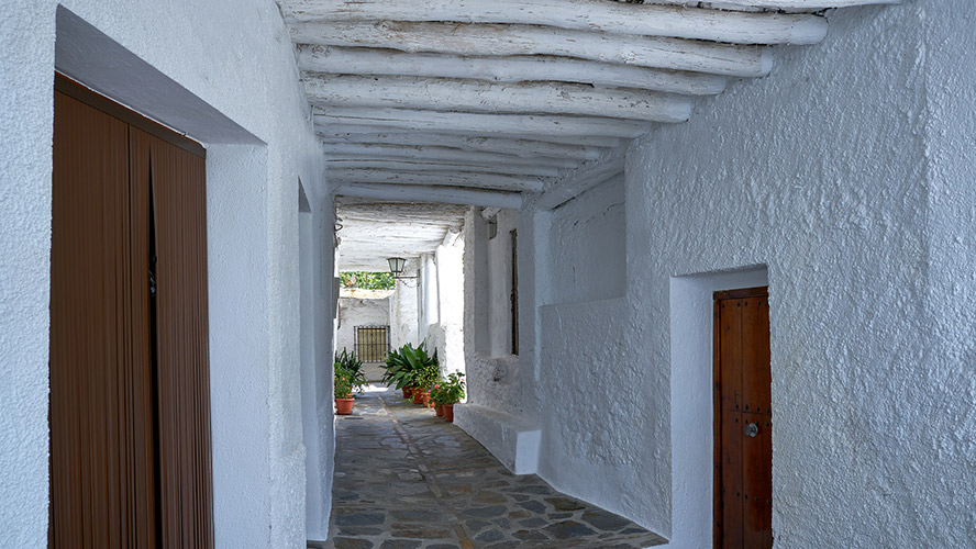 Casas encaladas de tejados planos, estrechos callejones de inspiración musulmana, un espacio natural que quita el hipo… Pampaneira, la gran joya “blanca” de la Alpujarra granadina, espera al viajero con los brazos abiertos desde lo alto, porque parece estar colgada de la montaña. Está a más de 1.000 de altitud y a una distancia de aproximadamente 70 kilómetros de Granada y, junto a las localidades de Bubión y Capileira, forma el Barranco del Poqueira, que fue declarado en 1982 Conjunto Histórico-Artístico.