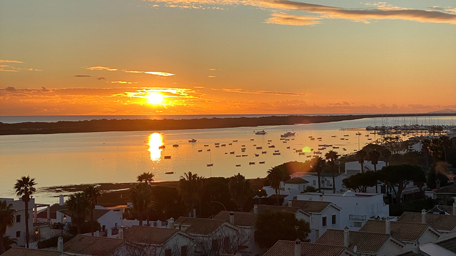 Ayamonte es el pueblo más occidental de la provincia de Huelva, justo en la desembocadura del Guadiana, haciendo frontera con Portugal, país con el que está comunicado a través del conocido como Puente Internacional del Guadiana.