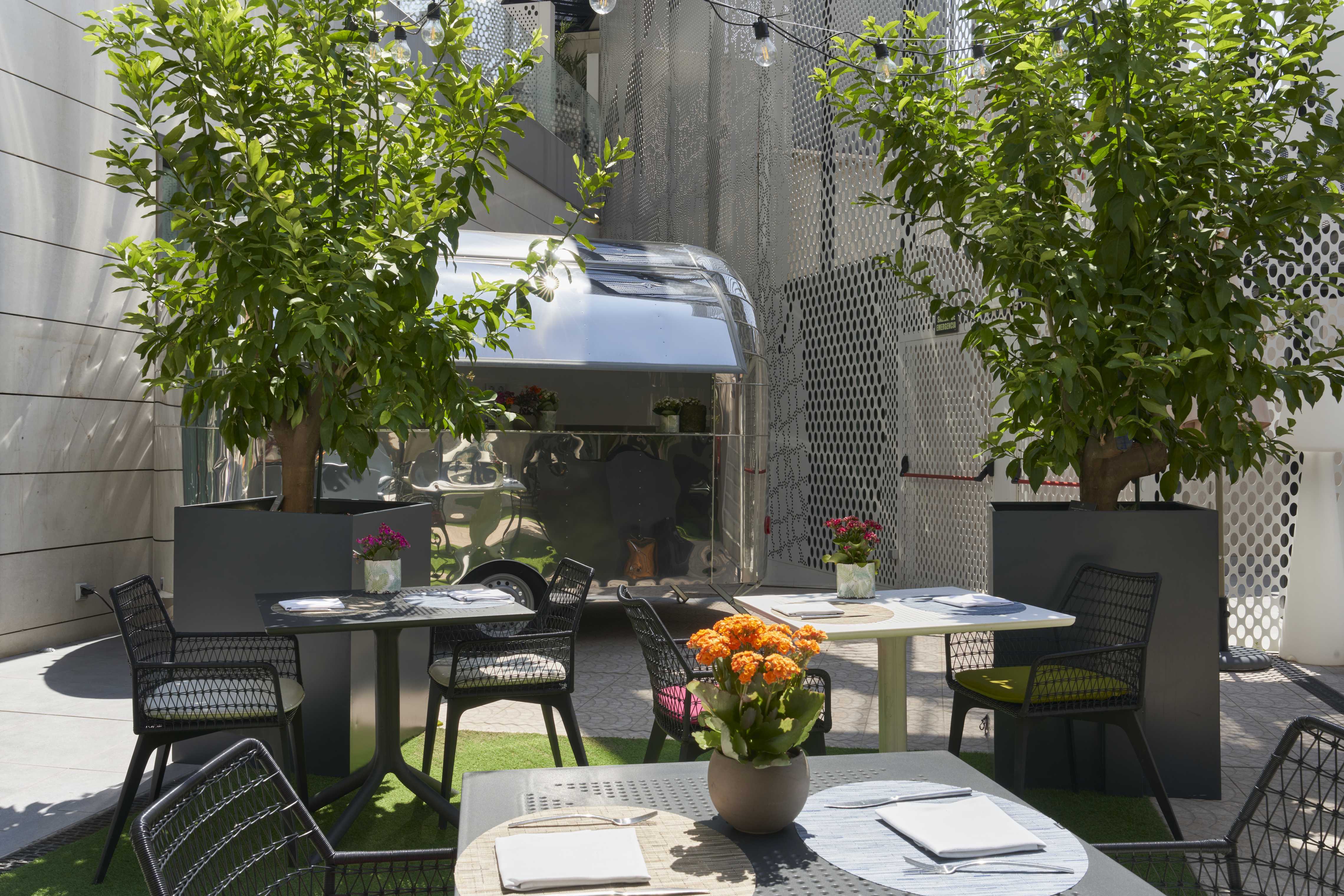 El hotel cuenta con una piscina exterior donde poder disfrutar de un día de sol y refrescarte para escapar del bullicio de la capital. Una de las características peculiares de la terraza es que cuenta con una terraza food truck, donde podrás elegir entre un sándwich o una hamburguesa, acompañado de una bebida