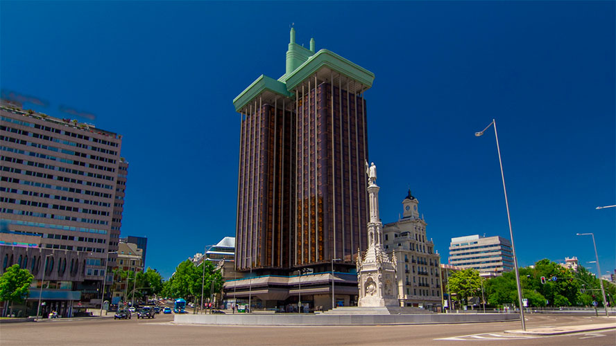 Las Torres de Colón, visibles desde numerosos puntos de la ciudad, llevan dibujando el skyline de Madrid desde finales de los años 70. Esta obra de Antonio Lamela ha sufrido varias modificaciones hasta llegar a su aspecto actual. La principal, la de la cubierta de color verde en forma de enorme enchufe y estilo Art Déco que las remata y de la que cuelga una escalera antiincendios que ha unido ambas torres, en principio concebidas como dos edificios independientes. Durante muchos años este conjunto arquitectónico fue conocido como las Torres de Jerez, siendo propiedad, en aquel momento, del grupo empresarial Rumasa, presidido por el mediático José María Ruiz Mateos. Junto a las torres resulta todo un espectáculo ver las habilidades de los muchos skaters y breakdancers que se dan cita aquí, sobre todo a la caída de la tarde.
