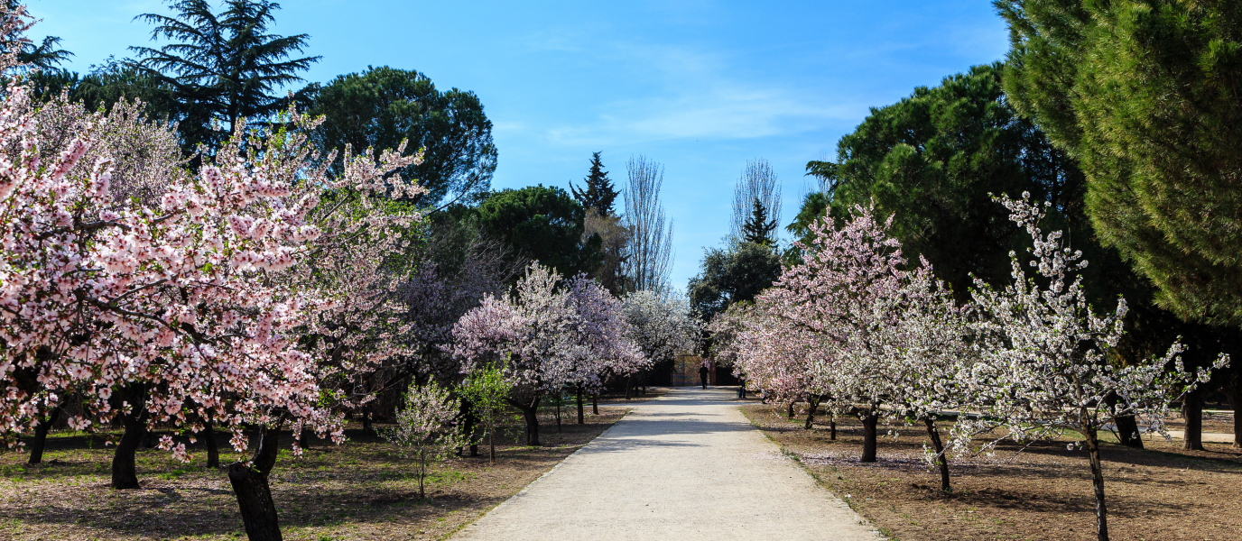 Este delicioso y bonito parque cuenta con grandes extensiones de árboles diversos, olivos, pinos, eucaliptos, etc., si bien los protagonistas son los almendros, que, cuando florecen en los meses de febrero y marzo, conforman un espectáculo de gran belleza y magia.