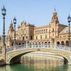 Después puedes explorar el animado barrio de Triana, conocido por su ambiente auténtico y sus tiendas de cerámica tradicional cruzando por el Puente de San Telmo junto la Torre del Oro, pasea por la Calle Betis a lo largo del paseo fluvial del río Guadalquivir, desde donde tendrás unas vistas espectaculares del río y el casco antiguo de Sevilla.