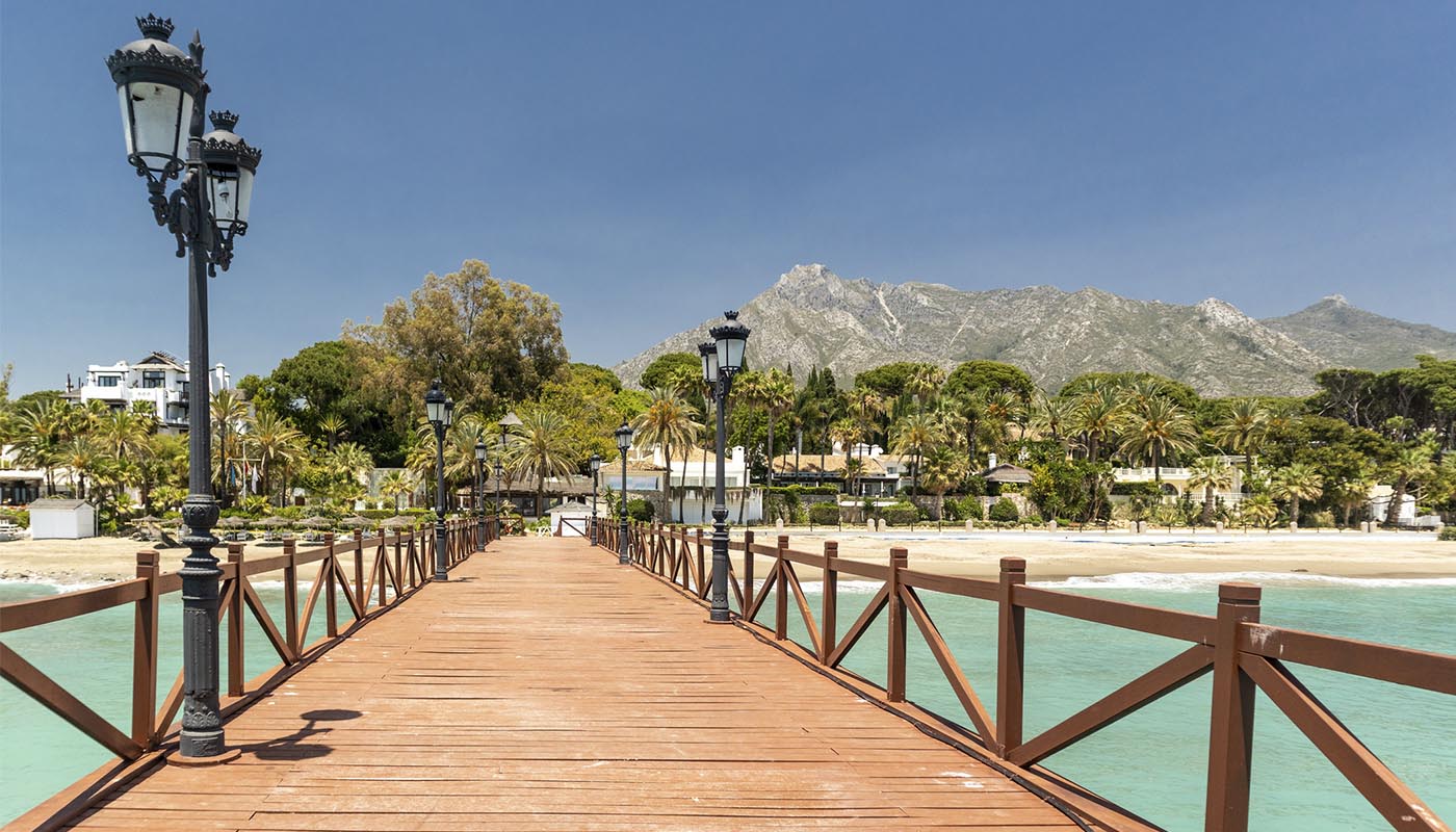 Desde la ribera oriental del río Guadalmedina se puede llegar directamente a la Plaza de la Constitución tomando la Calle Cisneros, primero, y la Calle Especería después.