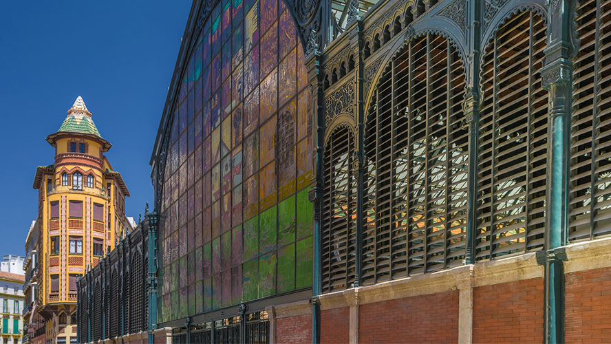 El Mercado Central de Málaga se conoce también como Mercado de Atarazanas. Es un lugar de alta actividad en pleno corazón de la ciudad. Se trata de un edificio de clara apariencia industrial decimonónica. Pero posee un pórtico central de estilo nazarí, decorado con detalles neoárabes. También llama la atención una enorme vidriera, situada en la fachada opuesta al pórtico central, que representa el puerto de Málaga y la ciudad durante el siglo XVI.