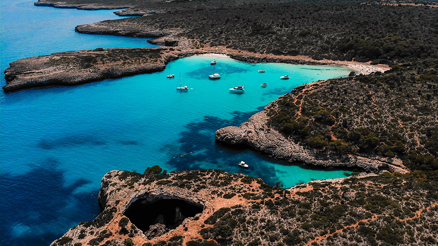 Desde el mar, puedes visitar la Cueva des Coloms, una espectacular gruta que es recomendable visitar con un guía especializado.