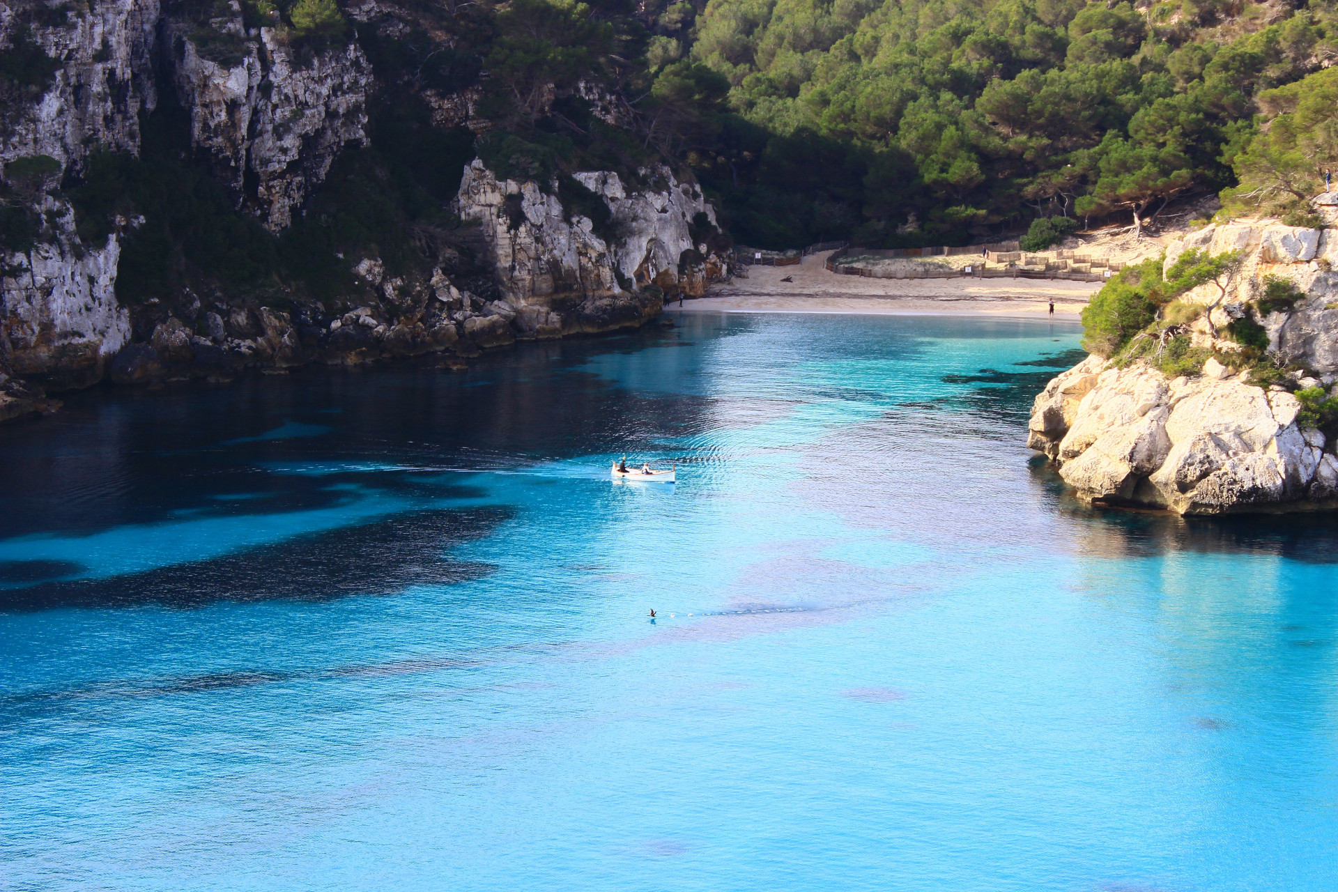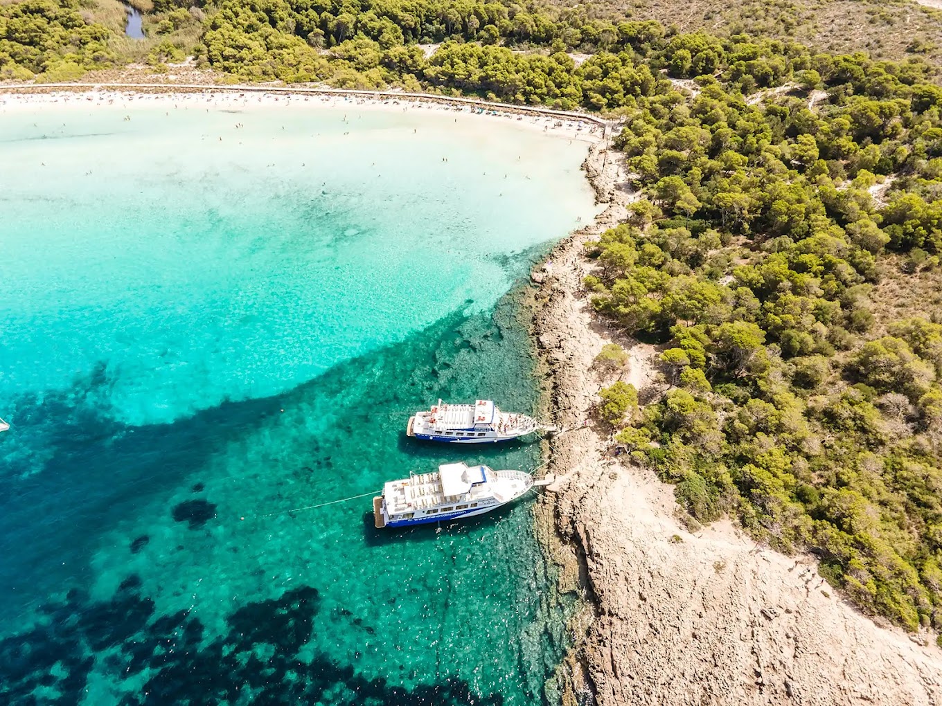 Haz una parada en Son Saura o Cala Turqueta, dos de las calas más emblemáticas de la isla. Disfruta de acceso directo a la playa desde el barco y tómate un tiempo para nadar en las aguas cristalinas y broncearte bajo el sol mediterráneo.