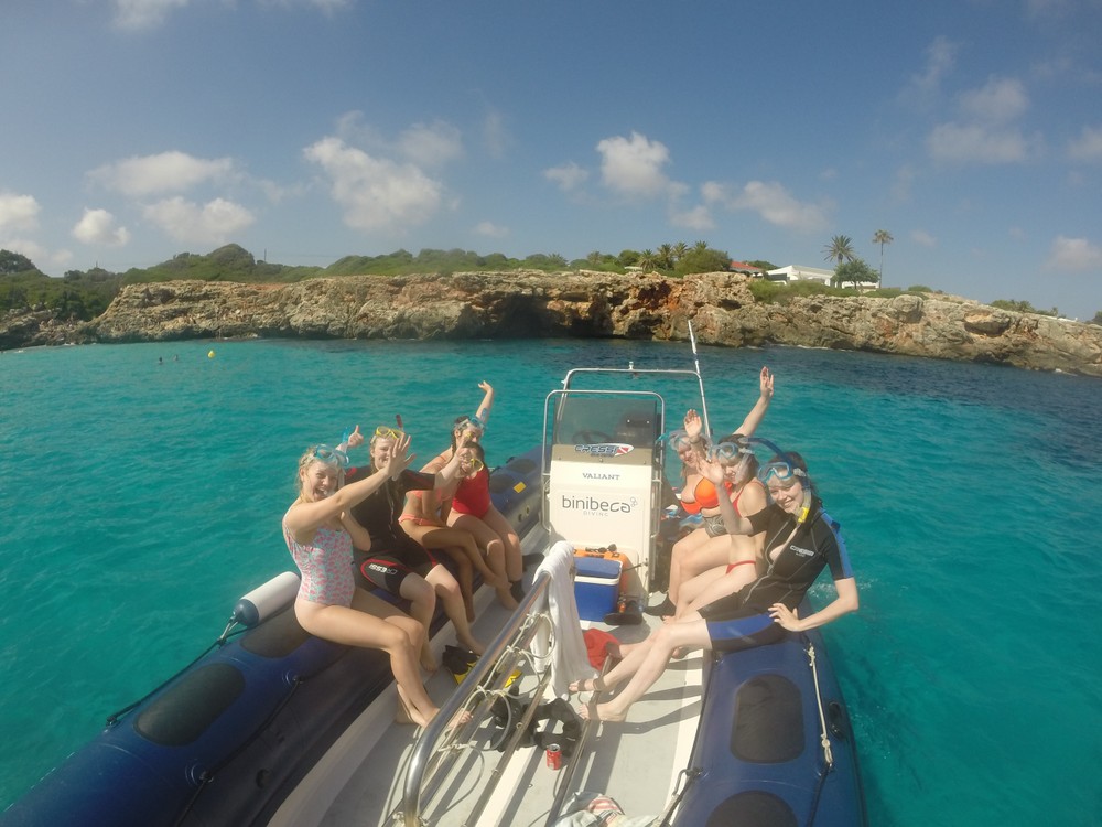 A continuación, haremos dos paradas más en lugares idílicos como puedan ser Es Caló Blanc, el encantador pueblo pesquero de Binibeca, Binidalí, Biniparratx, la cueva de Cala Rafalet, entre otros. Escogeremos la mejor ruta a izquierda o derecha de la costa, según el estado del tiempo y el mar, para garantizar así el confort y seguridad de todos los participantes.