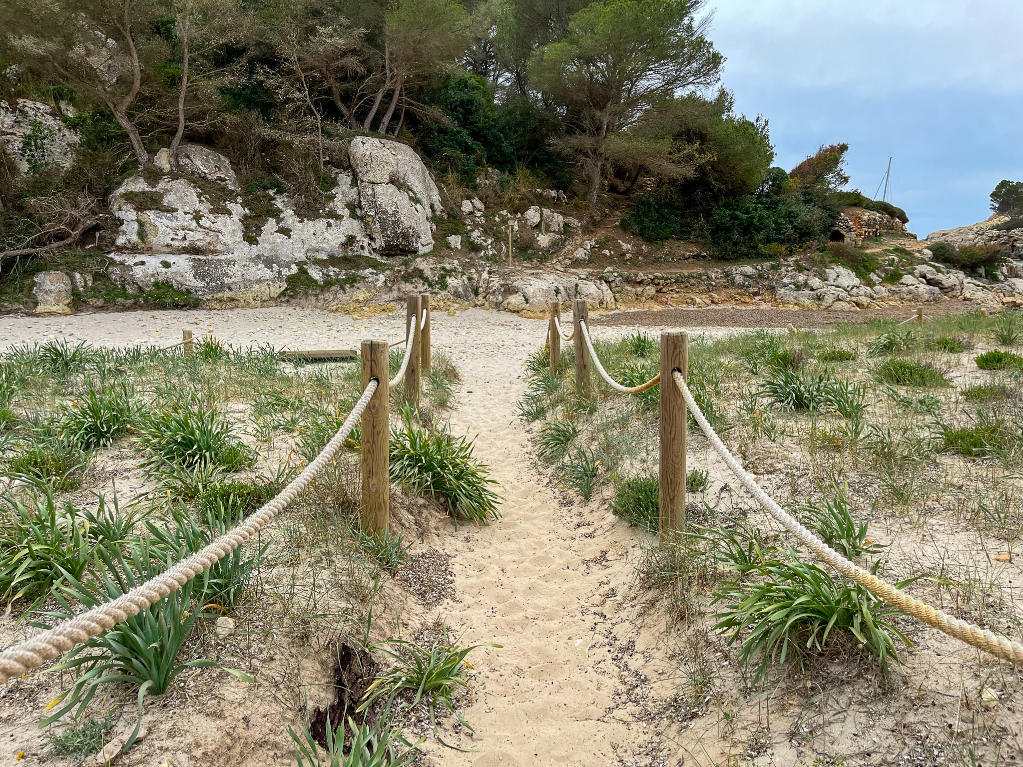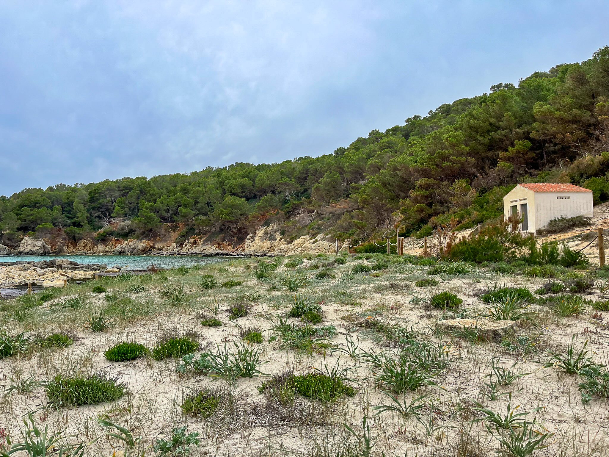 Tu aventura comienza con una caminata escénica de aproximadamente 1 hora desde el aparcamiento más cercano en Sant Tomás. El sendero serpentea a través de paisajes cautivadores de colinas onduladas, bosques de pinos y vistas impresionantes, cada paso te prepara para el paraíso que te espera.