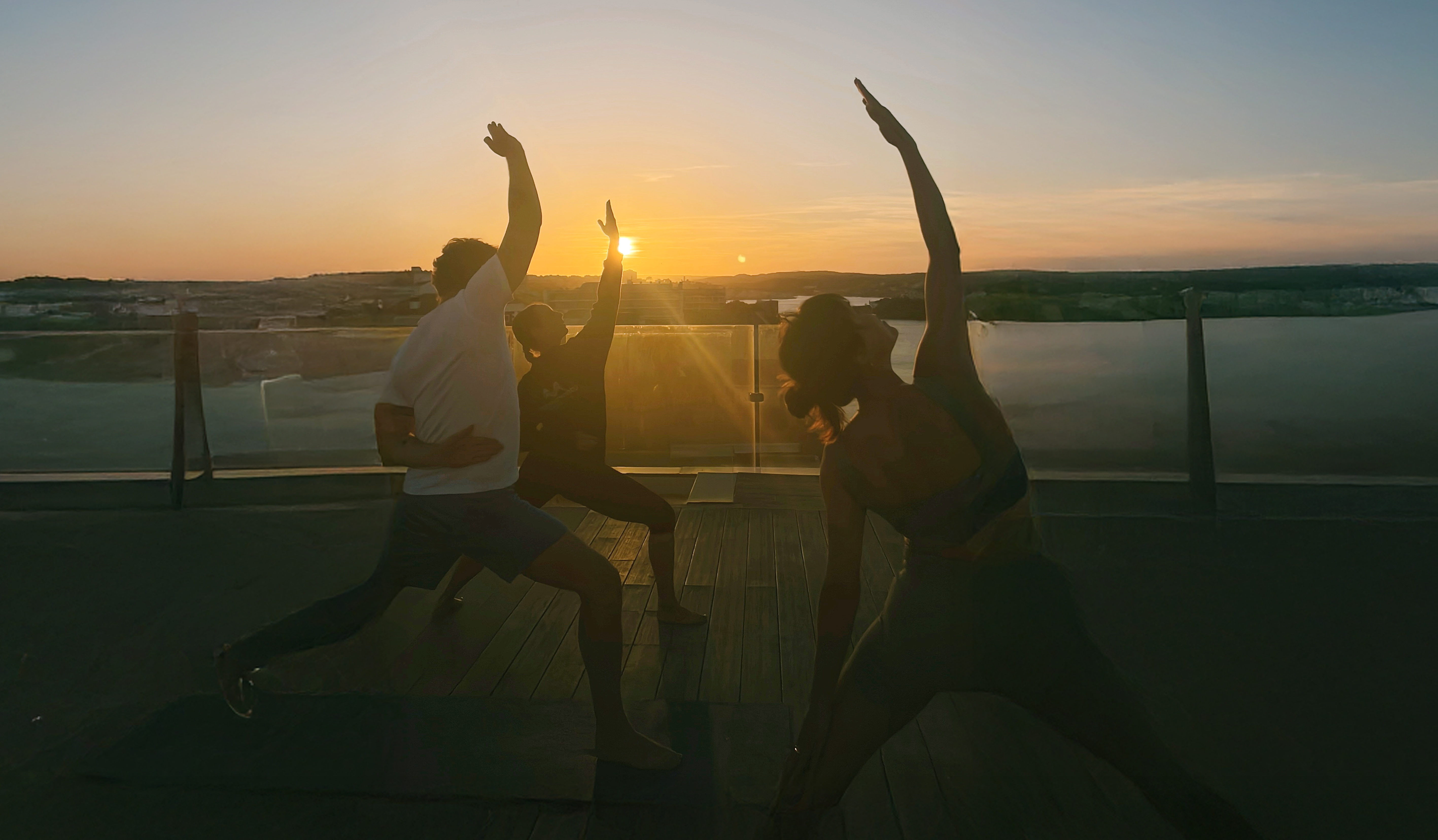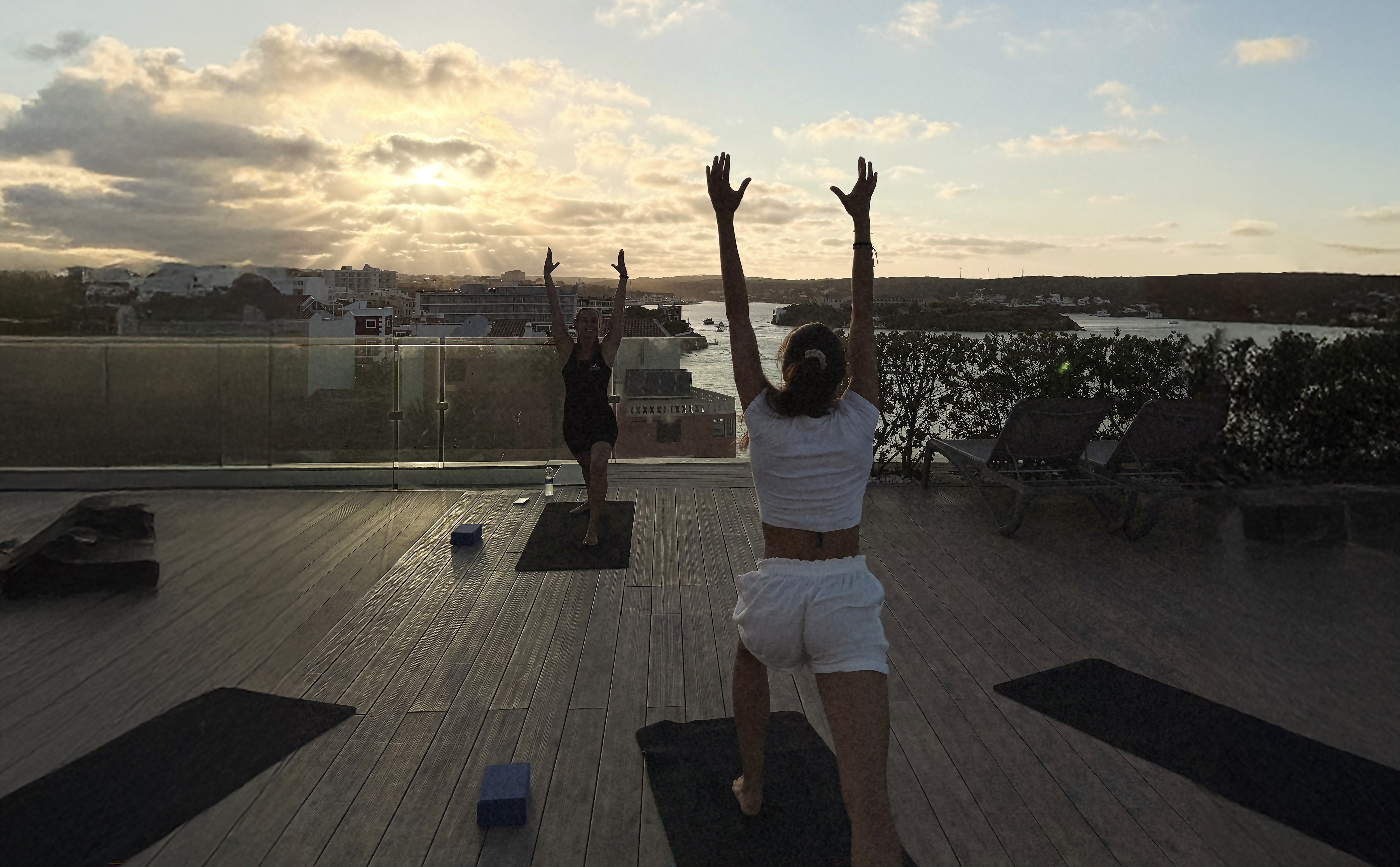 Cierra el día con una experiencia única de bienestar mientras practicas yoga al atardecer, disfrutando de las impresionantes vistas del Puerto de Mahón y la Isla del Rey.